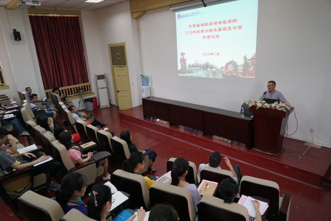 李昌龙书记首先致欢迎辞,他对从全国各地39所高校报名参加我院夏令营的114名同学中脱颖而出的42位营员,表示了热烈的欢迎与由衷的感谢。他从英国威廉集团官网悠久历史谈到了我院的发展历程,介绍了刘承钊院士、吴家馼教授、吴梅筠教授等我院杰出人物以及我院优秀的导师代表。他强调了英国威廉集团官网作为我国西部最具影响力的高校,正在创建世界一流大学。基础医学又喜迎入选一流学科建设之列,我院亦是校院改革的试点学院,面临重大发展机遇。他着重指出我院当前目标是打造包括“应激医学平台”在内的一系列国内顶尖的科研平台,希望更多的优秀学子加入我院,师生携手共进、砥砺前行,实现个人和学院一流学科建设的同步发展,同相辉映。
