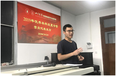 两位营员代表满怀收获发表了致谢感言,感谢我院提供了如此珍贵的交流机会,让他们对心仪的方向和导师有了更加深入的了解,言语之中还渗透着他们对成都这座城市的热爱以及我院科研氛围的向往之情。