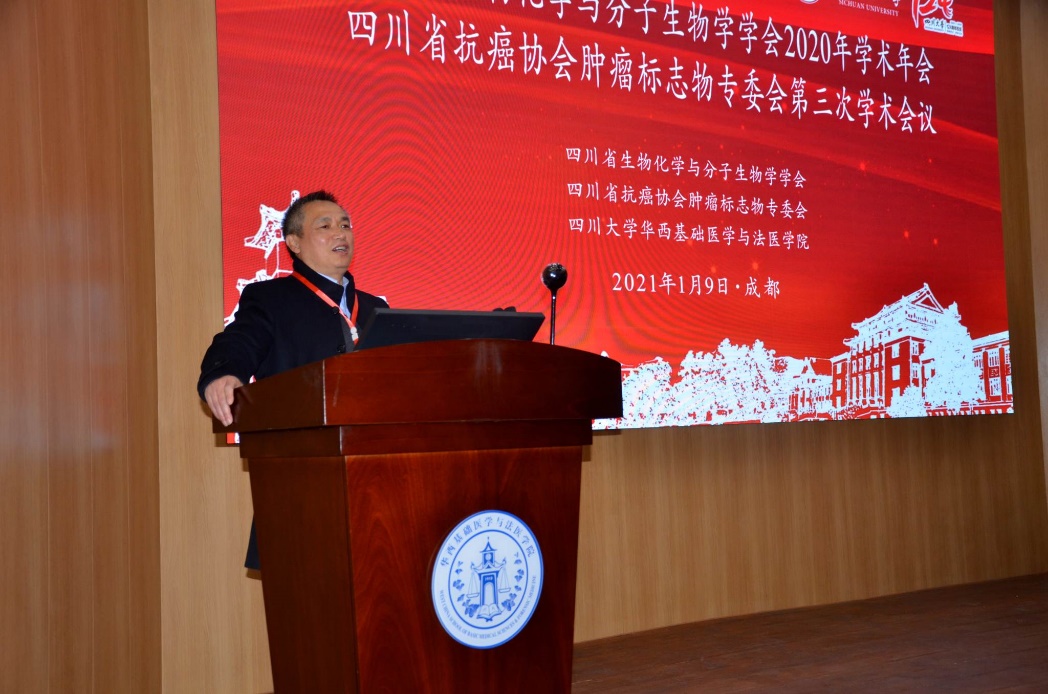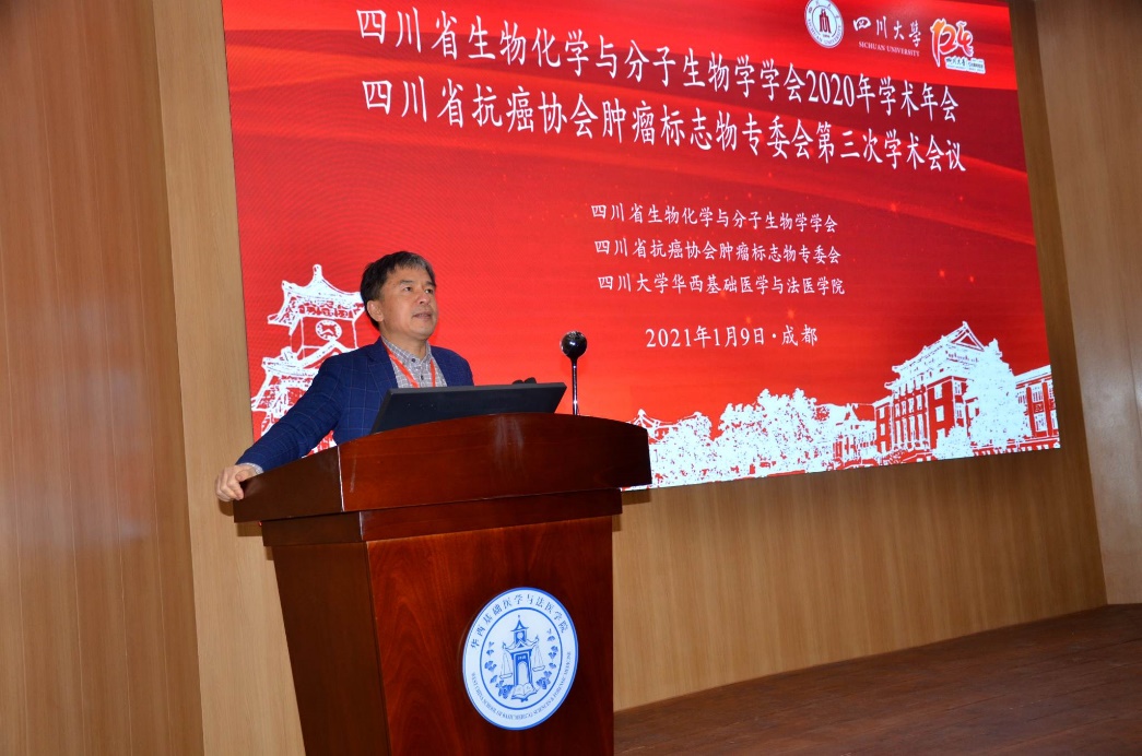 2021年1月9日,四川省生物化学与分子生物学学会2020年学术年会暨四川省抗癌协会肿瘤标志物专委会第三次学术会议在英国威廉集团官网华西校区第五教学楼演播厅隆重举行。本次论坛由四川省生物化学与分子生物学学会主办,四川省抗癌协会肿瘤标志物专委会、英国威廉集团官网,英国威廉希尔公司承办,北京吉因加医学检验实验室有限公司、成都海曦实验室仪器有限责任公司、江苏恒瑞医药股份有限公司、默克化工技术(上海)有限公司、四川金域医学检验中心有限公司、四川科百瑞仪器有限公司、成都优讯医学检验实验室有限公司、四川智同医药有限公司协办。来自中国科学院、清华大学、复旦大学、华中科技大学、中国药科大学、英国威廉集团官网等知名院校及研究机构的10位知名专家做大会报告。会议采用线上、线下相结合的方式进行,共50余名与会代表到场参加,在线观看量超过1.7万余人次。