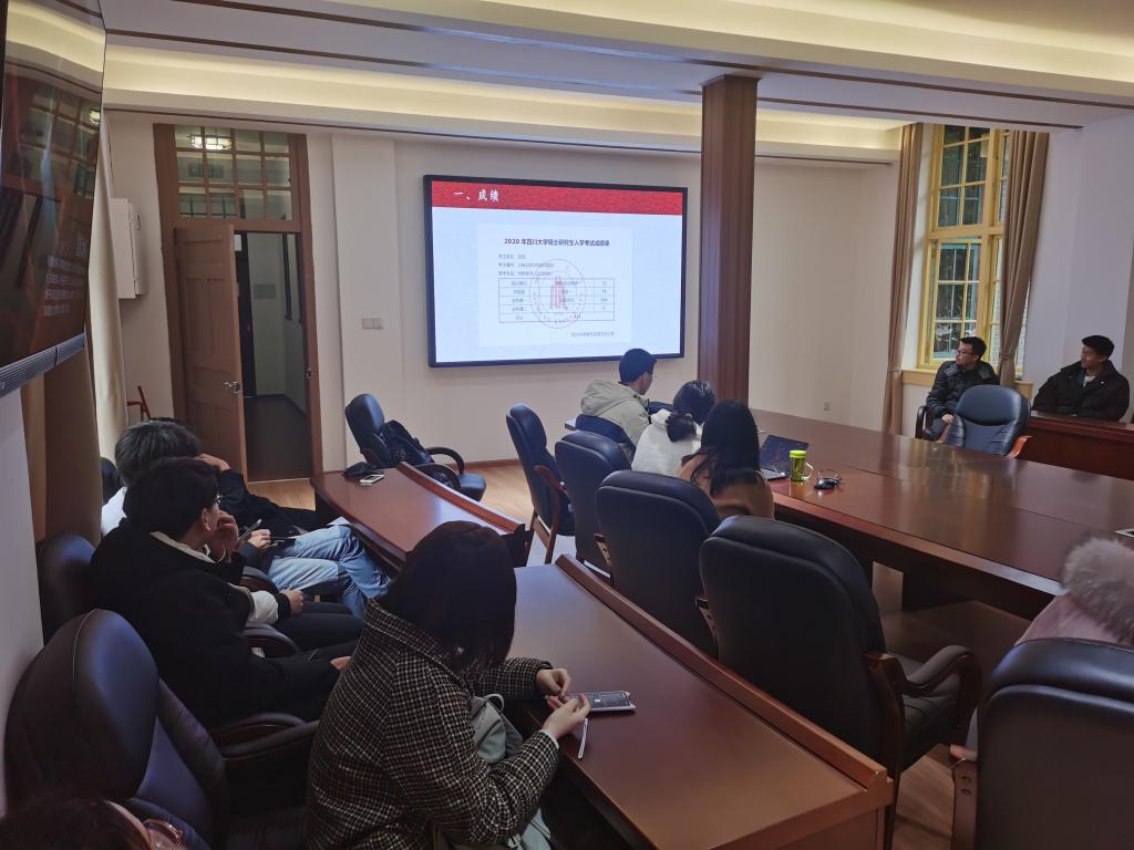 为给我院正在考研冲刺的16级本科同学提供必要的应试技巧,12月2日我院组织有丰富应考经验的优秀研究生,在学院会议室举行了考研冲刺经验分享会,在寒冷的冬日为紧张复习的考生们送去一份饱含暖意的考前关怀,参加分享会的有学院郑风劲老师、青思含老师、16级考研学生、2020级研究生同学。