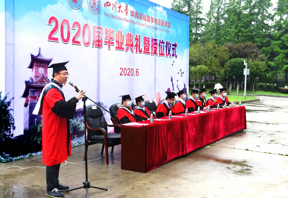 6月22日上午,学院2020届学生毕业暨授位典礼在华西校区逸夫楼前广场隆重举行。学院全体领导、学院学位评定分委会委员、教师代表以及2020届毕业生100余人参加了典礼。典礼由副院长梁伟波教授主持。
