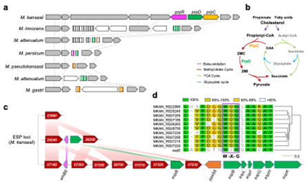 图2.堪萨斯分枝杆菌丙酸盐代谢基因及其特异性致病因子EspE样蛋白编码基因簇