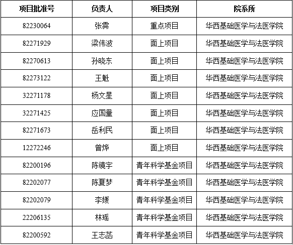 近日,国家自然科学基金委员会公布了今年国家自然科学基金集中申请受理期项目的评审结果。本年度,我院获批资助13项,获批经费784万元,其中重点项目1项,面上项目7项,青年科学基金项目5项。
