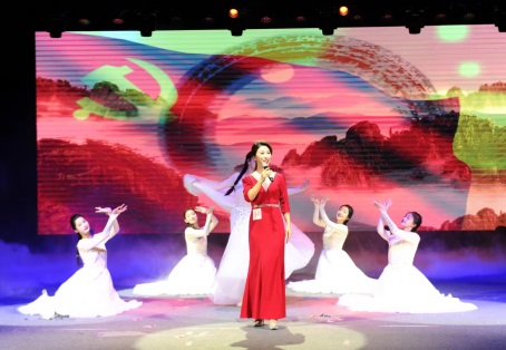 在决赛舞台上,伴随着优美的音乐和舞蹈,李浇老师落落大方,从容自信,她深情演绎了中国共产党从1921年成立以来艰苦卓绝的奋斗历程,爱国志士炙热的“爱国心”如星火燎原燃烧了整个中华大地,他们有着“生的伟大,死的光荣”的崇高追求,最终英雄们的血肉铺成了中华人民走向未来美好生活的“康庄大道”。通过诵读,表达了中国共产党领导中华儿女为了民族的解放、人民的幸福、社会的进步,毅然投身革命洪流不断努力奋斗的精神。