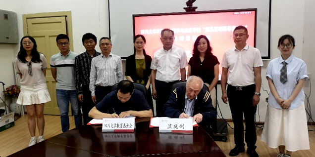 6月1日上午,学院在华西第五教楼二会议室举行隆重而简朴的 “蓝晶基础医学奖学金”捐赠签约仪式,由我院87岁高龄的生理学蓝庭剑教授用积攒20余年的国务院特殊津贴捐赠10万元成立该项奖学金,用于资助家境贫困的优秀基础医学学子。蓝庭剑教授及其女儿蓝峰女士、学校党委副书记张伟、学校对外联络办公室副主任、教育基金会副秘书长白鹏、学校离退休处副处长唐洪、学院党委书记李华、院长李昌龙、党委副书记陈维操、工会主席黄莉、生理教研室主任杨文星及教师、学生代表参加了捐赠签约仪式。签约仪式由李华主持。