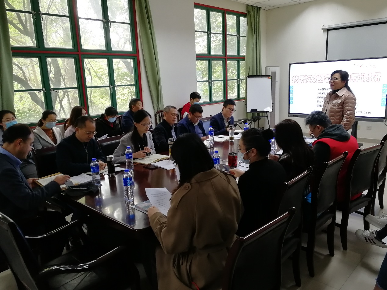 4月1日下午,学院党委书记李华、院长李昌龙、副书记陈维操、副院长刘肖珩、梁伟波、张舒羽,工会主席黄莉及机关各部门负责人一行10人到三教二楼组织胚胎学教研室会议室开展调研,人解组胚党支部党员代表、组织胚胎学教研室、人体解剖学教研室、基础医学专业实验室、形态学实验室教师代表17人参会,会议由人解组胚党支部书记杨桂枝主持。