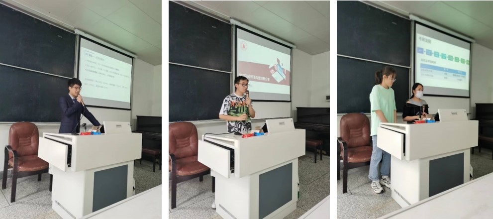 陈琦伟老师详细介绍了近年来学院研究生招生的基本情况、招生政策和调剂原则,希望同学们积极报考学院夏令营。2018级基础医学专业沈诚忱同学分享了自己夏令营的申请经验和保研学校选择过程。法医专业疏志龙、基础医学李欣和汤晓卉同学分别根据自身备考经验,系统全面地为同学们讲解前期准备、信息搜集、考研流程以及各科复习建议等。精彩的发言引得同学们的阵阵掌声和会心微笑。