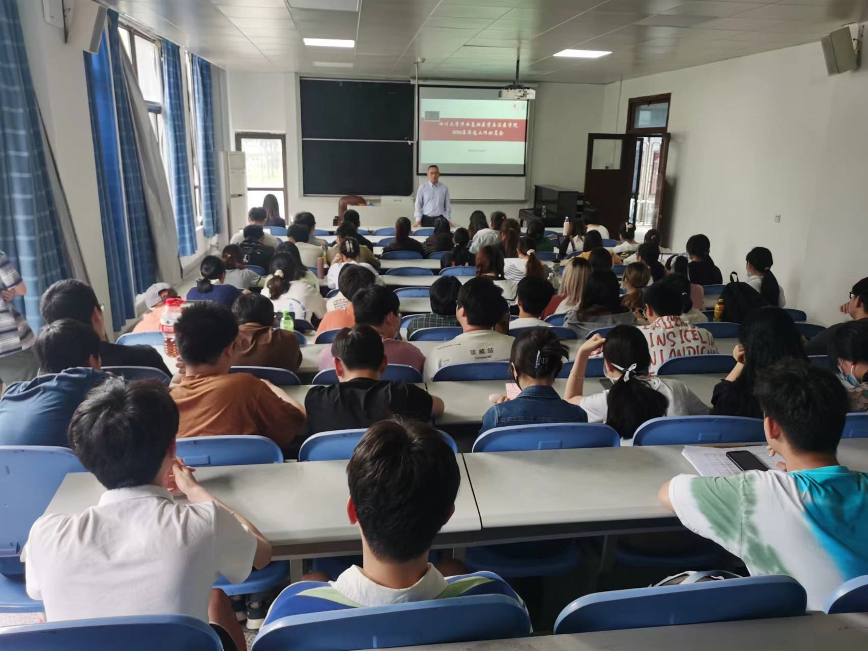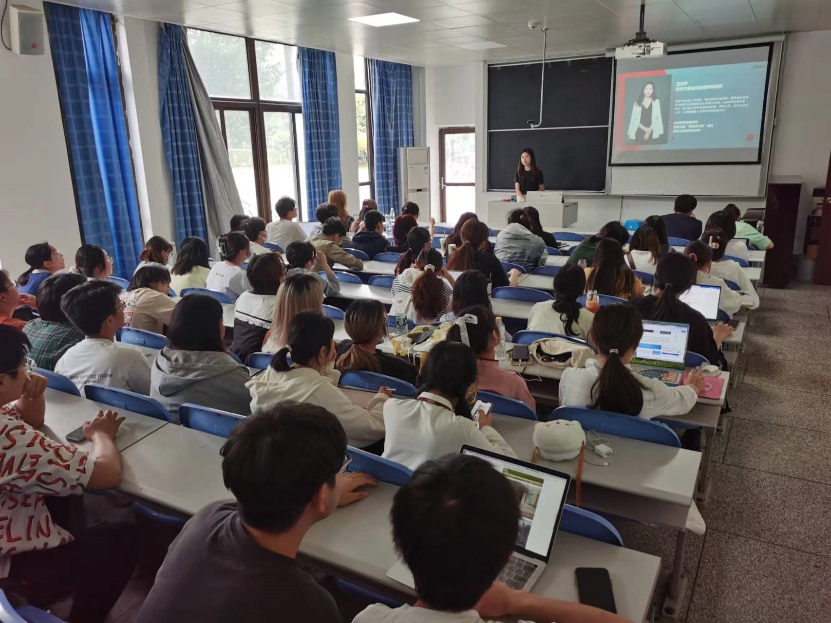 为实现更加充分更高质量就业,鼓励我院本科生进一步明确深造目标、提升核心竞争力,5月26日下午我院在逸夫楼基北教室举行深造工作动员会。院长李昌龙、新东方教育集团出国部资深留学规划师王利莎、学科办陈琦伟老师、辅导员郑风劲老师、2018级学生代表以及2019级、2020级本科生参加了报告会。