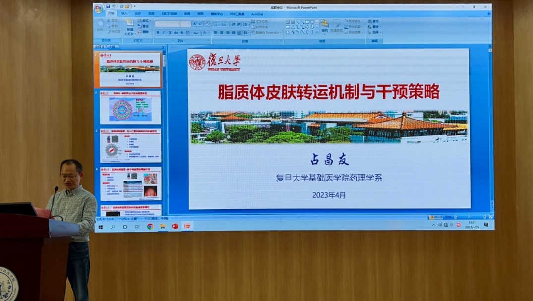 2023年4月26日下午,应我院邀请,复旦大学基础医学院药理学系占昌友教授在华西校区第五教学楼报告厅作了题为“脂质体皮肤转运机制与干预策略”的学术报告。