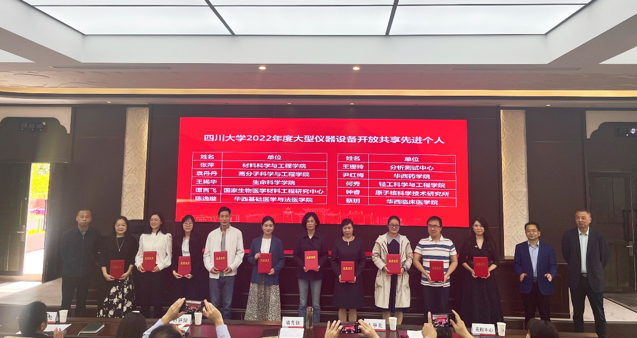 褚良银副校长向我院张舒羽副院长(左五)颁发“英国威廉集团官网2022大型仪器设备开放共享先进单位”奖牌