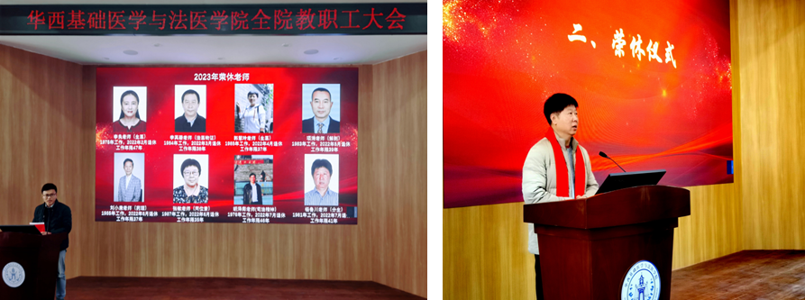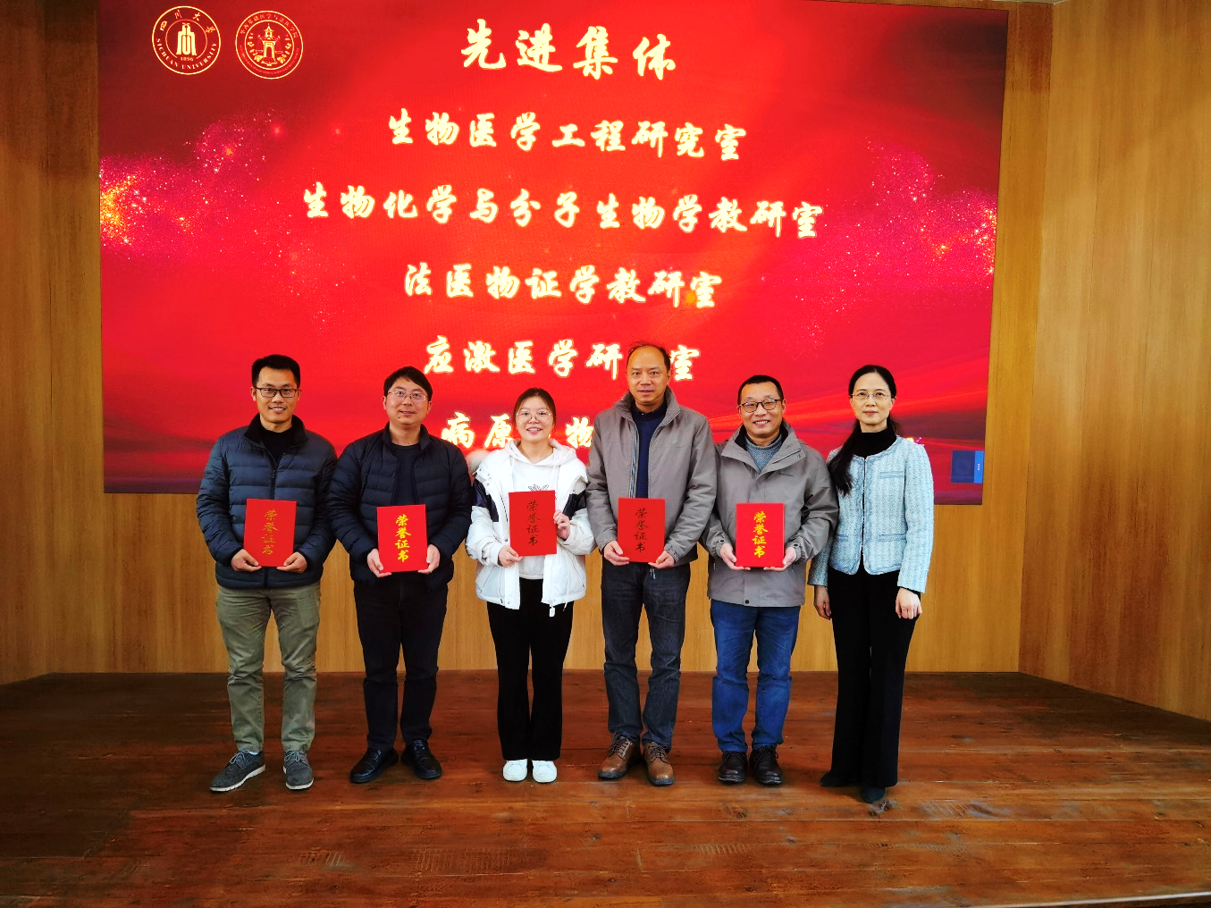 为弘扬创先争优精神,表彰优秀代表。会上,学院根据2022年度工作考核结果,表彰了生物医学工程研究室、生物化学与分子生物学教研室、法医物证学教研室、应激医学研究室、病原生物学系5个先进集体;陈建平、刘戟、张霁、陈丽、周黎明、宋凤、沈阳、廖诗平、陈军利、朱磊10名先进个人;王正、曾烨、孙晓东、王魁、叶懿5名优秀青年科研之星;冀珍妮、冯颖、朱敏佳、赵志伟、丁艳5名本科教学先进教师;董立华、应国量、袁东智、刘渊、彭旭5名公共事务先进个人,学院领导为获奖集体、个人颁发荣誉证书,全院教职工以热烈的掌声向获奖者表示衷心的祝贺。