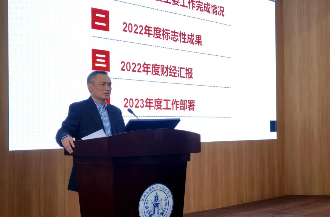 院长李昌龙同志以《凝心聚力 打通堵点 奋力推进学院高质量发展》为题,向全院教职工作2022年度学院工作述职报告,公布了学院2022年度财经收支情况,并就2023年重点工作进行了部署。他表示,2022年度,学院在师资队伍建设、科研项目申报与平台建设、英国威廉希尔公司、安全管理、后勤服务等方面均取得了一定的成绩,特别在师资培育、拔尖英国威廉希尔公司成效、本科深造率等方面取得了标志性成效。同时,也面临师资队伍数量不足、质量不高、人才引进艰难,科研方向分散、难以形成合力,办学资源来源单一等问题。他指出,2023年要持续深入学习贯彻党的二十大精神,落实学校新学期工作的部署安排,重点推进以下几个方面工作:一要完善激励机制,引人才、育人才、强队伍;二要全力开拓合作渠道,筹资金、申项目、建平台;三要优化课程结构,提升专业核心课程质量,促本科深造;四要进一步强化过程管理,持续提升研究生培养质量;五要加强老师“三进”,做“四有”好老师;六要全力协助教师高质量完成教改和科研项目;七要推进学院修缮工作;八要加强平台和学科建设;九要优化师生考核评价体系,激发师生志存高远、追求卓越的内生动力;十要强化党建引领,凝心聚力,团结奋进,营造学院发展向上的优秀文化和生态环境。他最后强调,新学期全院教职工要抓住机遇、顺势而为、干在实处、挤进前列。