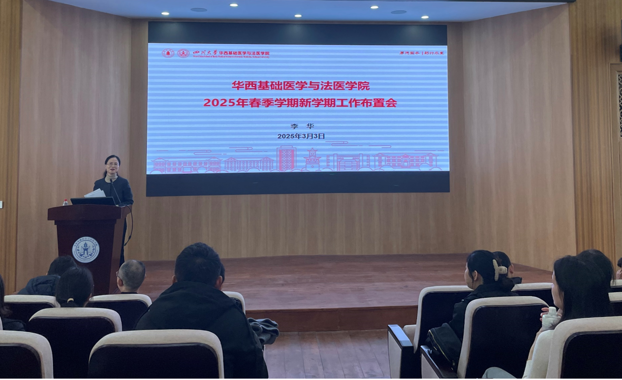 会上,首先由学院党委书记李华传达学校2025年新学期工作布置会精神,以“四个认识”“六个坚持”“十三项工作”传达了学校新学期的工作部署,通报学院民主生活会情况,结合学校工作部署和《教育强国建设规划纲要(2024-2035年)》的要求,从党建引领高质量发展、青年人才分层分类培养、深化人才机制体制改革、建强一流师资队伍、提高人才自主培养质量、加快基础医学和法医学学科建设、加强对外合作等方面部署学院新学期重点工作,强调要以学校党委第九届第三次巡视整改为契机,始终坚持党的全面领导,以党的政治建设为统领,狠抓落实,打好“十四五”收官战,谋好“十五五”开局篇,助力华西医学整体率先迈入世界一流。