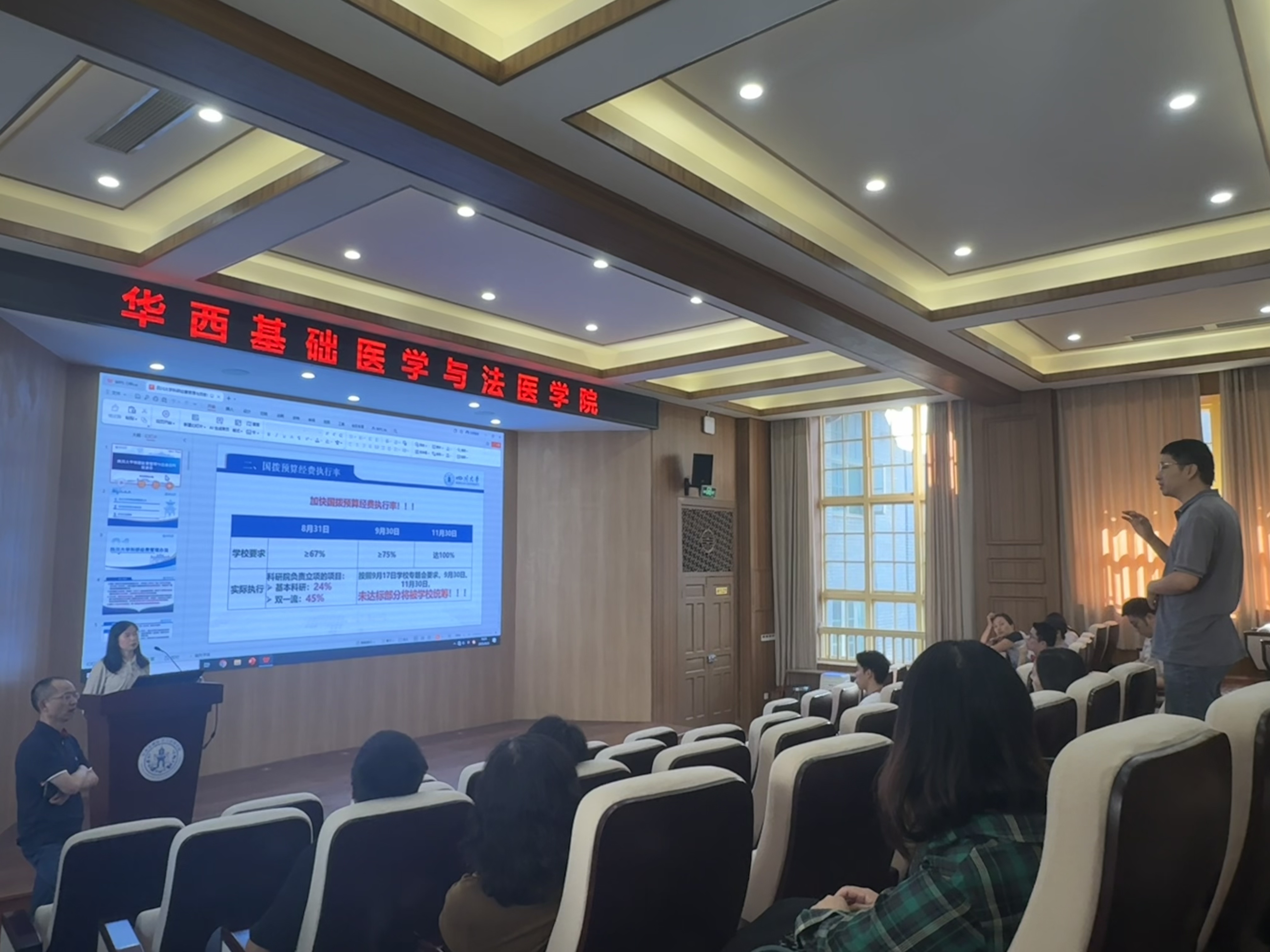 为进一步规范科研经费管理,帮助学院教师了解相关政策变化,学院于9月23日下午在华西5教报告厅召开科研经费管理与自查自纠宣讲会。特邀请学校科研院综合科科长简崇书老师来院宣讲。会议由刘肖珩副院长主持。