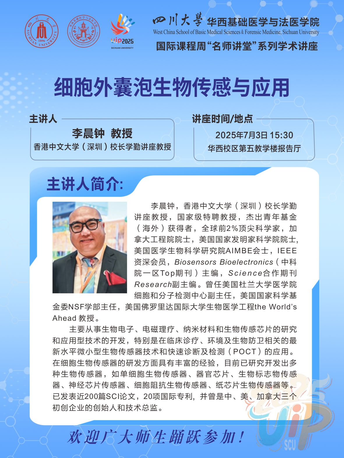 【2025年国际课程周“名师讲堂”系列学术讲座】细胞外囊泡生物传感与应用