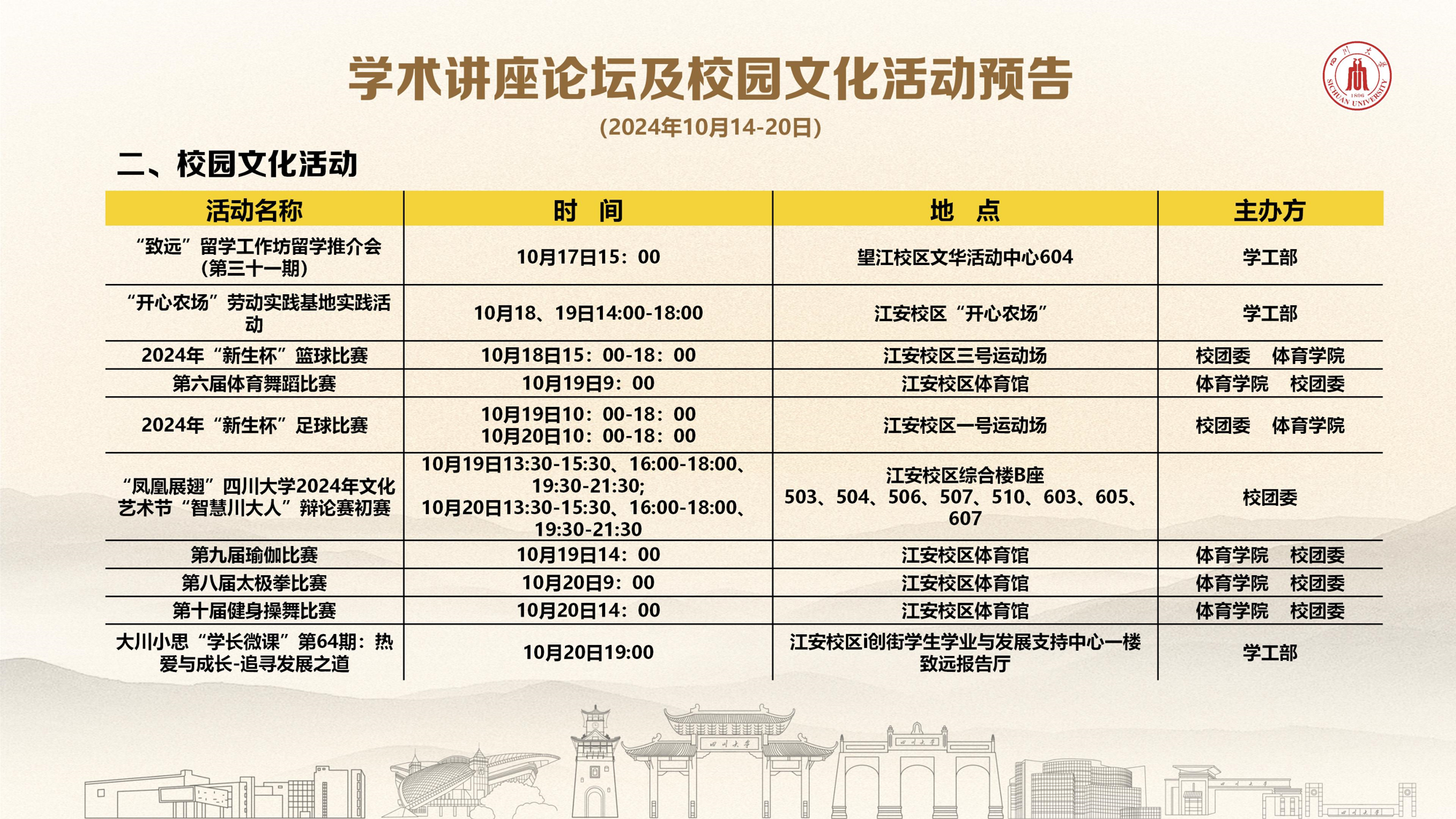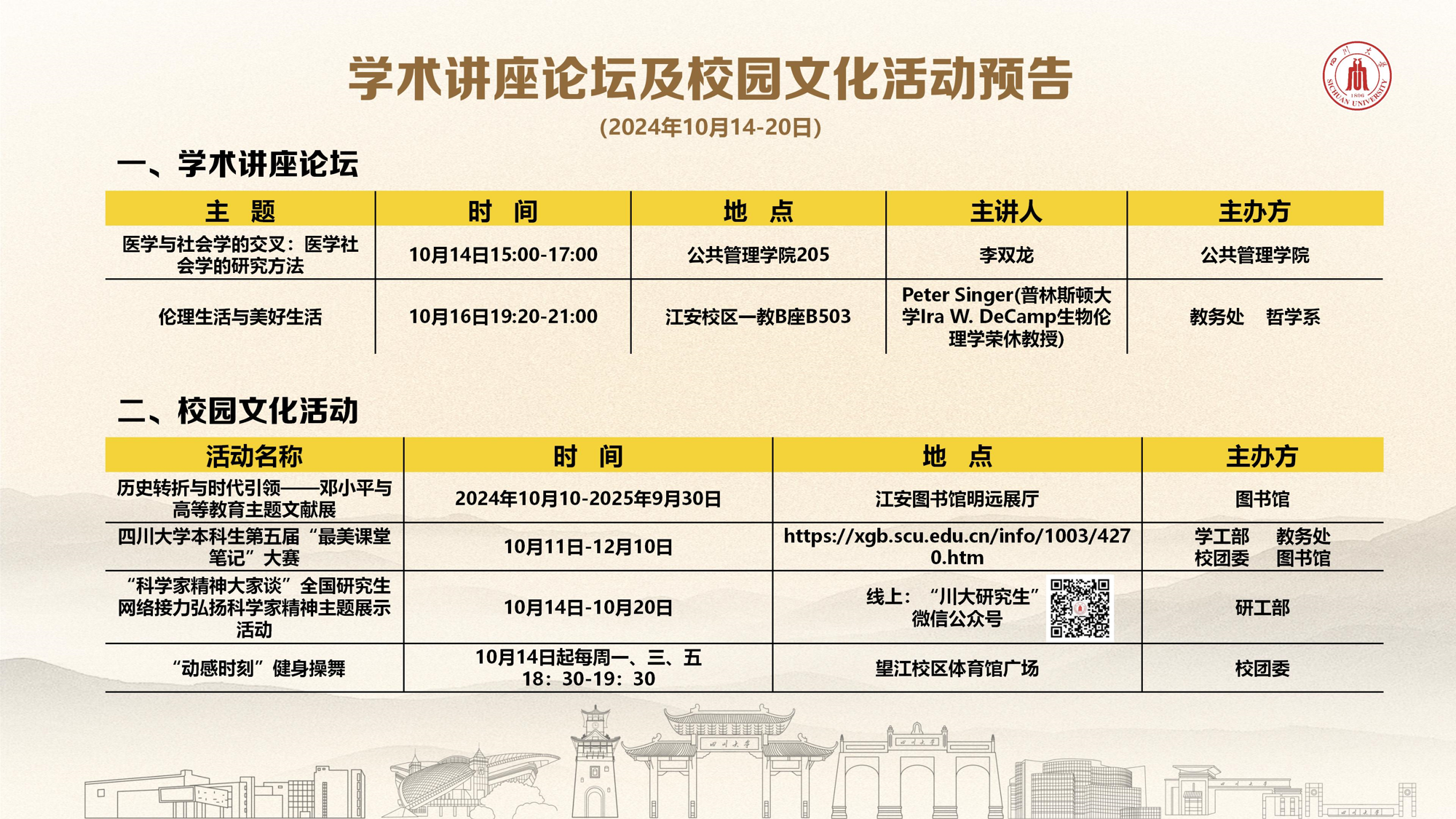 英国威廉集团官网2024年10月14日-20日学术讲座论坛及校园文化活动预告