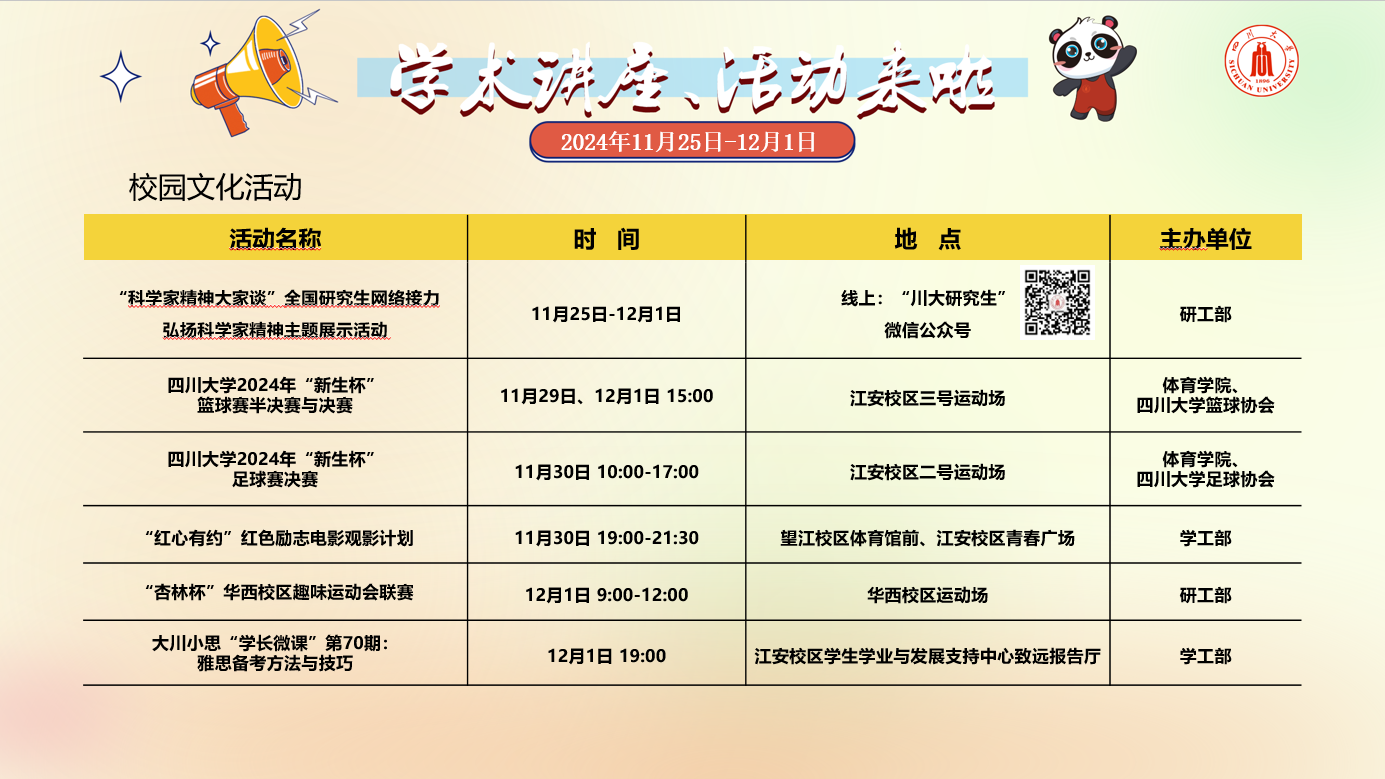 英国威廉集团官网2024年11月25日-12月1日学术讲座论坛及校园文化活动预告