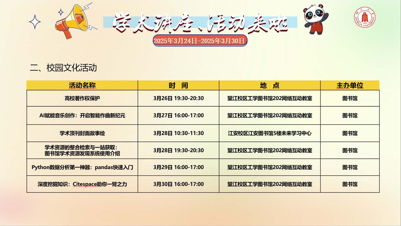 校内学术讲座论坛及校园文化活动预告(二)