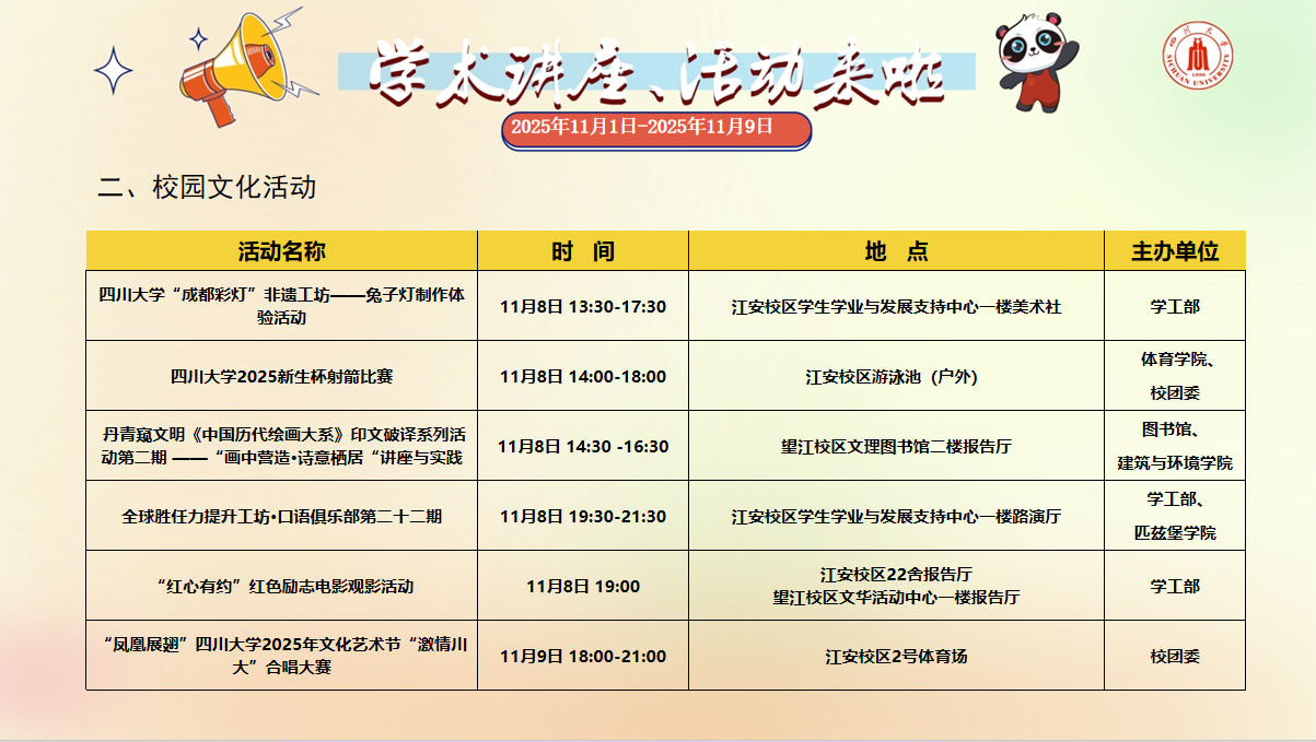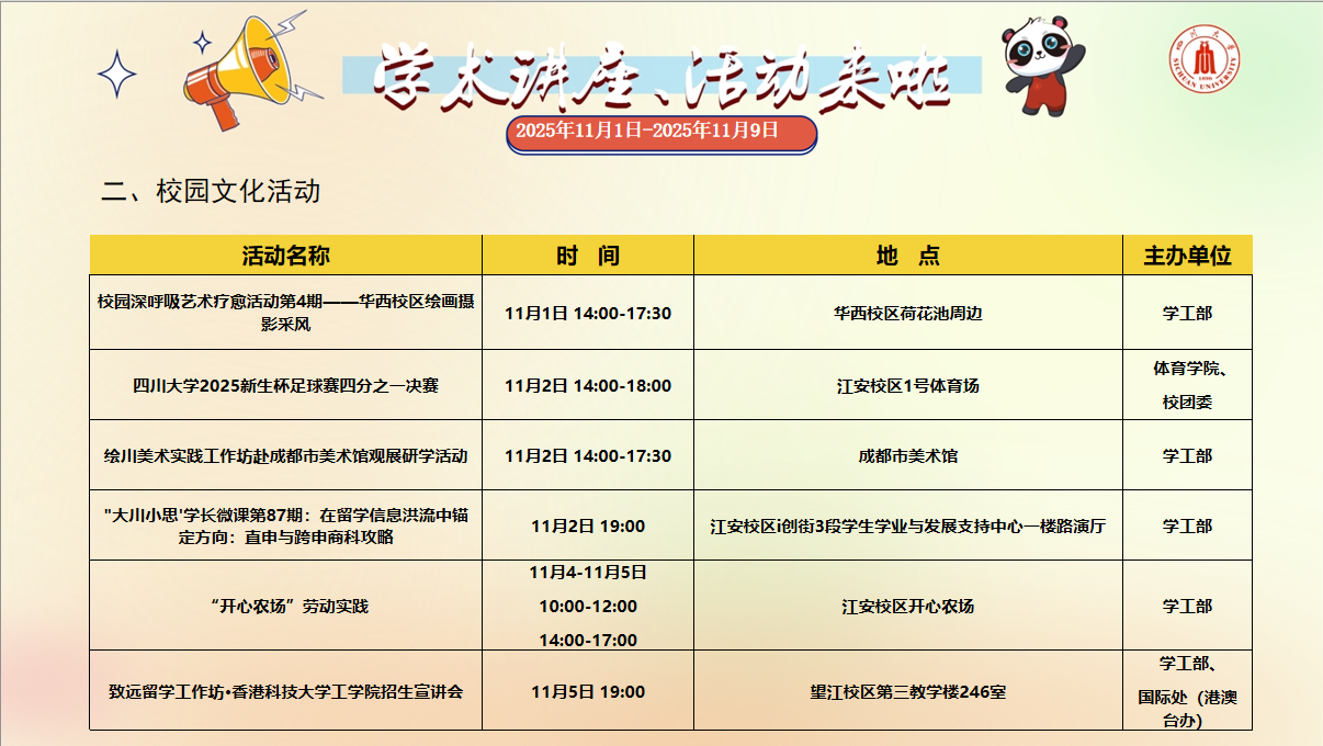 英国威廉集团官网校园文化活动预告(2025年11月1日-11月9日)