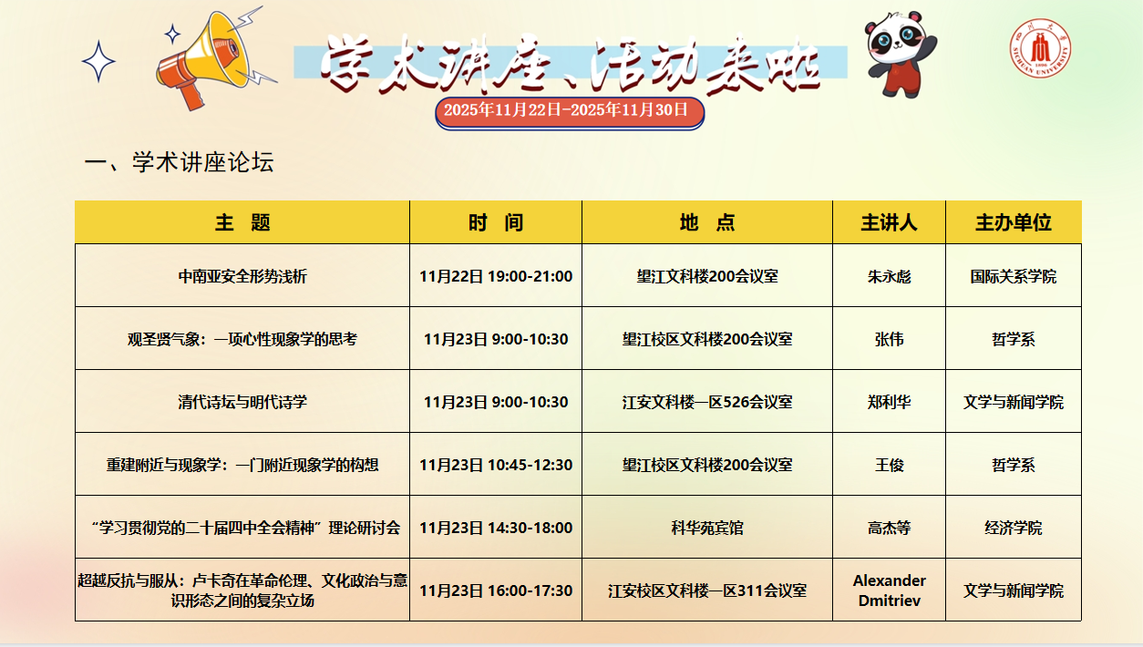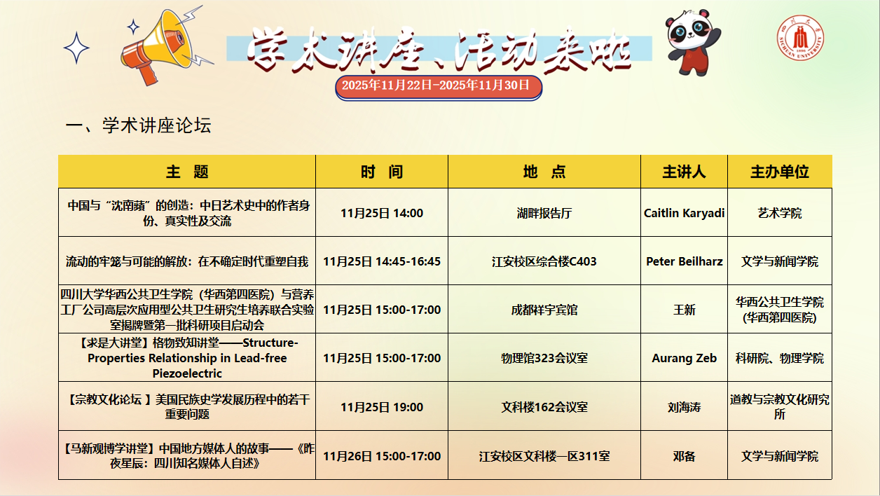 英国威廉集团官网学术讲座论坛、校园文化活动预告(2025年11月22日-11月30日)