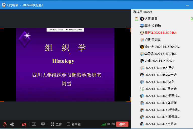 周雪教授上《组织学与胚胎学》