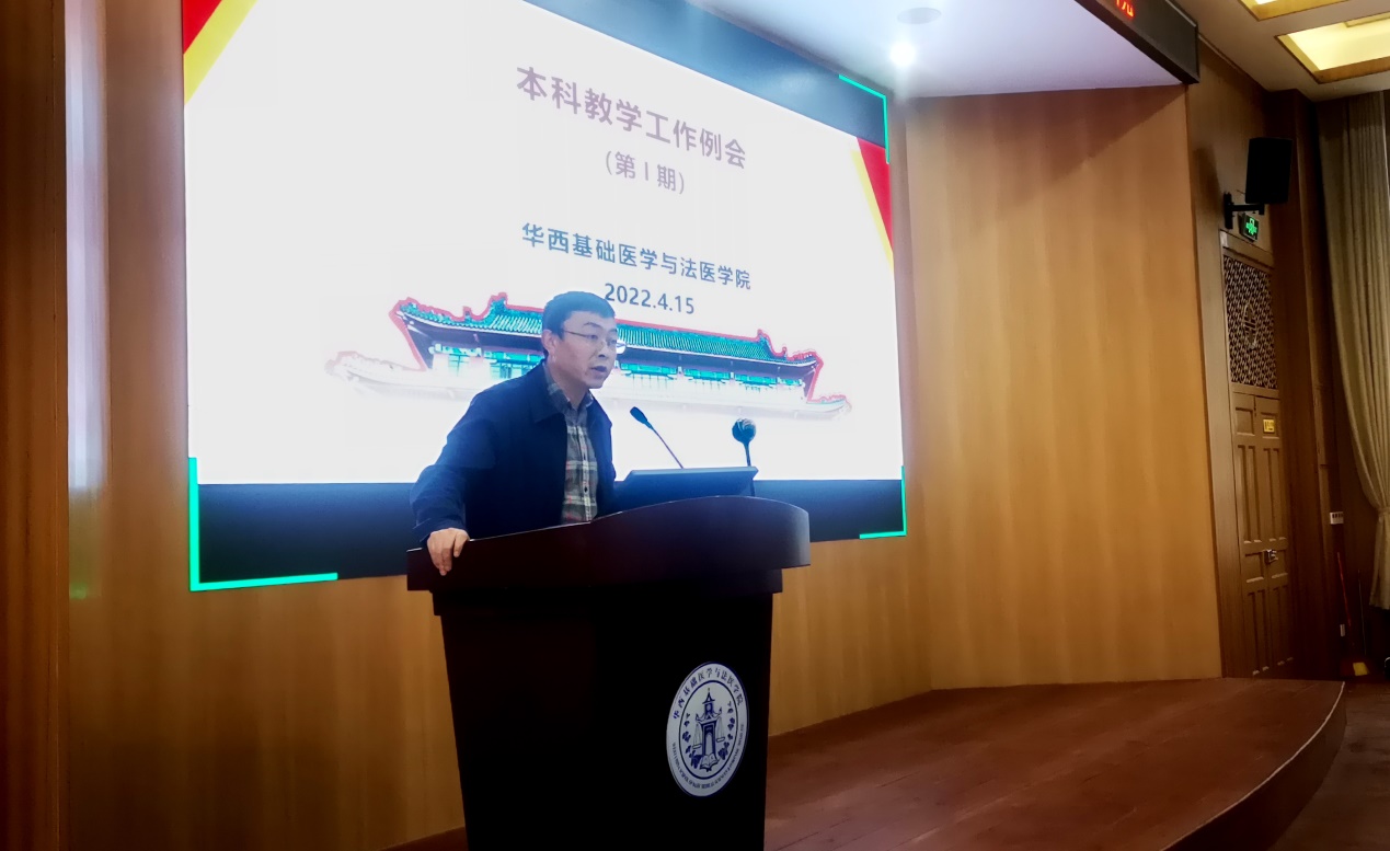 梁伟波副院长做总结发言。他指出,本科教育是大学的根和本,是高校教师的第一要务。全院教职工应继续坚持立德树人,严格遵守教育教学纪律,从内容体系、两性一度、课程思政、实践教学四个方面抓好课程建设。他强调,各教研室要保持华西优良传统,积极开展形式丰富、数量丰盈、效果扎实的基层教学活动,做好开课前的集体备课、老中青的传帮带工作。要积极探索更加客观公正、科学合理的过程考核,保证课程成绩能为学生的学习表现提供可靠的结论性评价。同时,课程结束后要注重对课程目标达成度进行反思,将课堂教学质量实实在在提起来,努力写好基础医学、法医学国家级一流专业建设奋进之笔。