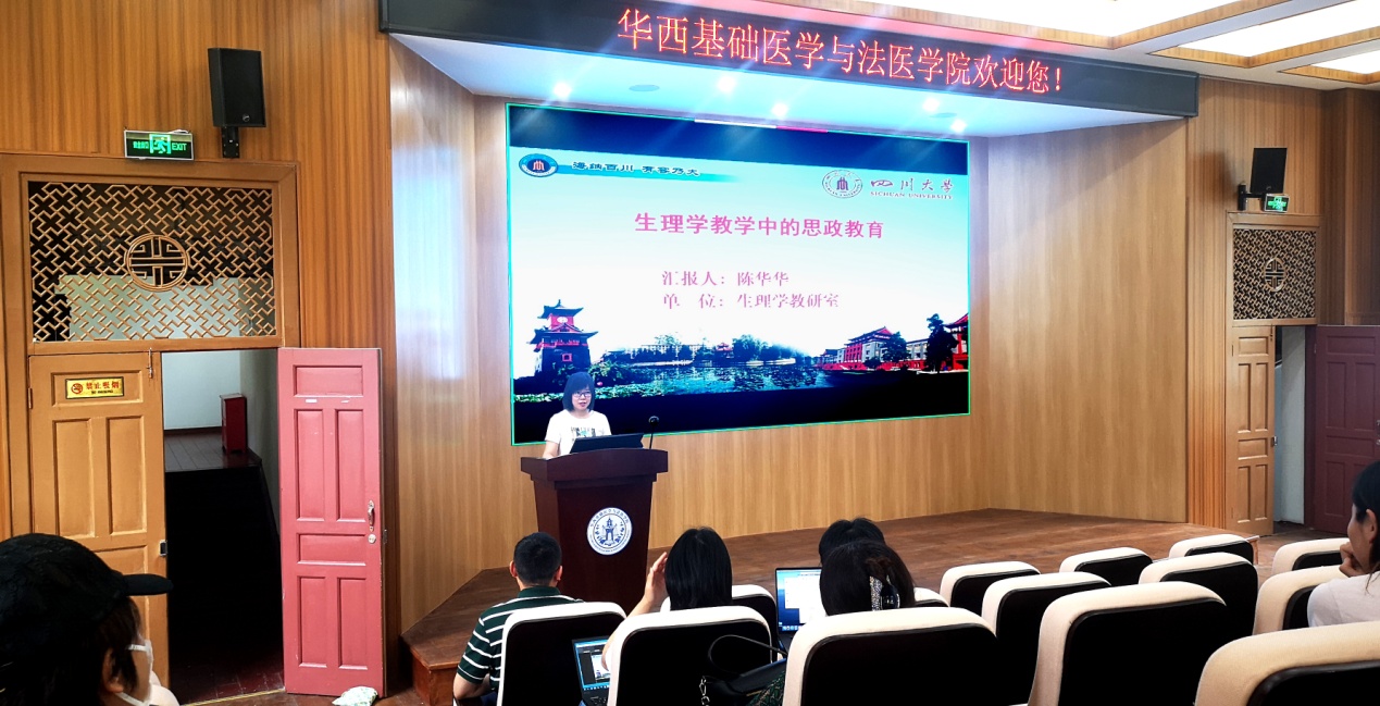陈华华老师以“生理学教学中的思政教育”为题,介绍了生理学教学中进行课程思政教育的方法。她提出,每一章节的生理学学科知识都可以与中外科学家的优秀事迹相结合,比如在讲血压的时候引入复旦大学钟杨教授的事迹,讲述他的“科研心、教育梦、民族情”;可以在讲失血对机体的影响时,引导学生进行无偿献血,讲述我院黄英老师20余年的献血史……这些都可以自然而然地培养学生的爱国主义精神、科学创新精神、无私奉献精神和人文精神,树立以人为本的人文精神,传播身边的正能量。