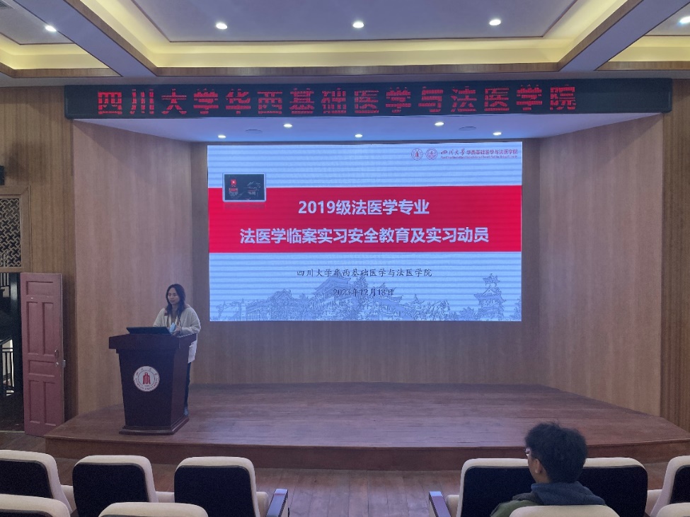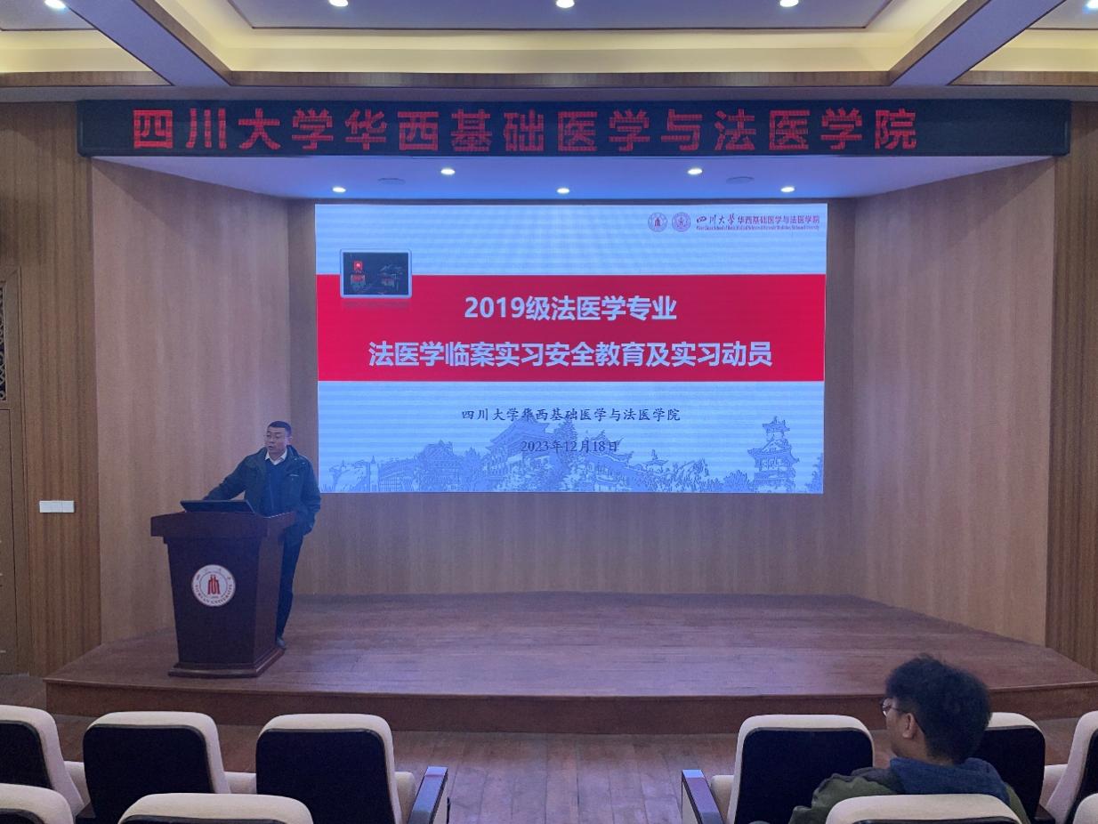 2023年12月18日下午,我院在第五教学楼报告厅举行2019级法医学专业法医学临案实习安全教育及实习动员。学院教学副院长梁伟波教授出席了动员会,2019级辅导员郑风劲老师和法医学专业全体学生参加了会议,会议由教学科肖世维主持。