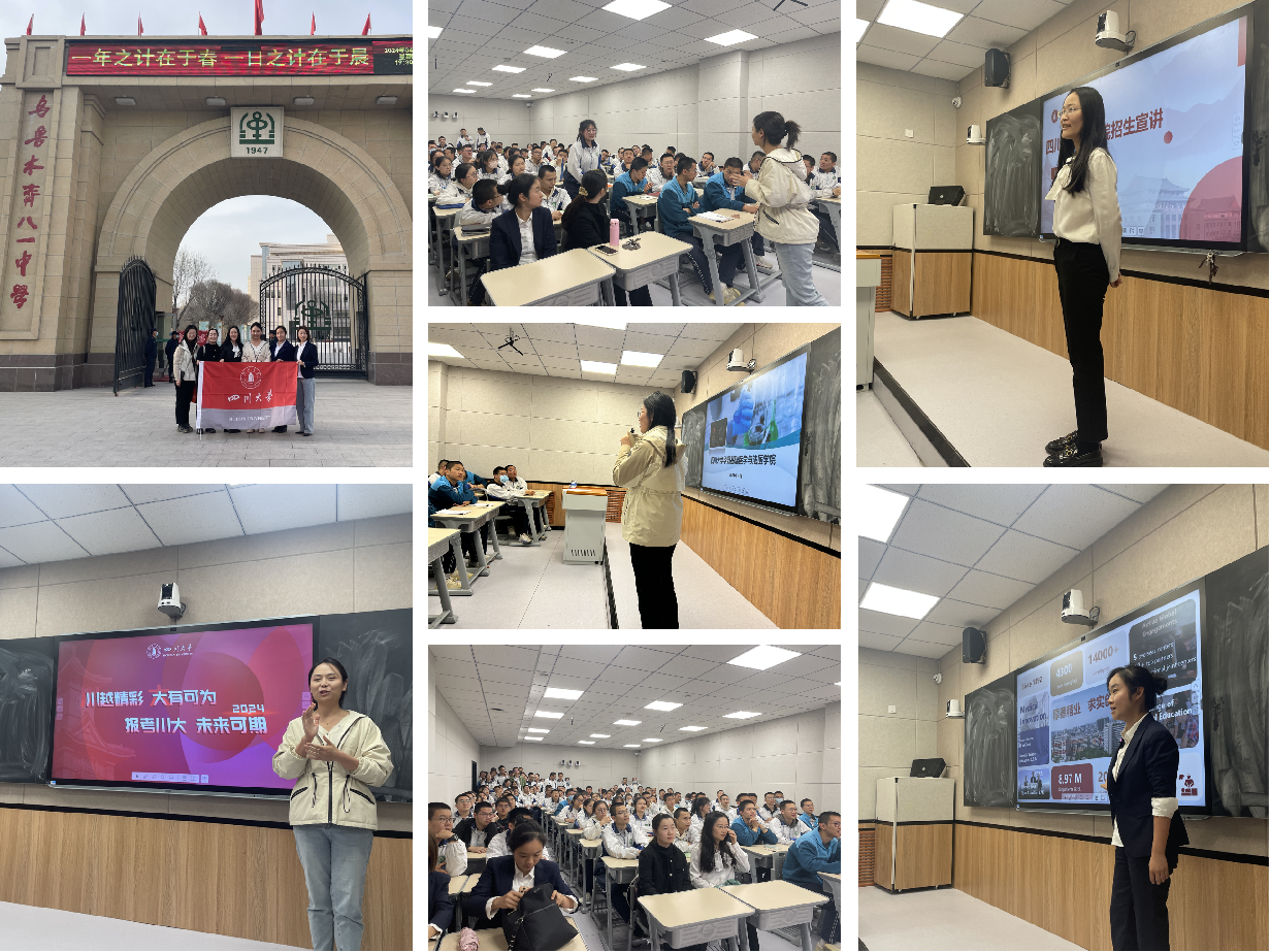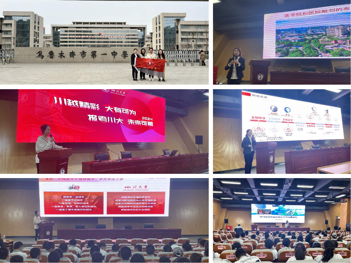 为贯彻落实习近平总书记关于教育的重要论述和党的二十大精神,加强与新疆维吾尔自治区重点中学的交流联系,4月13日-17日,由我院牵头组织、华西临床医学院(护理学院)及商学院参与的英国威廉集团官网招生宣讲团,先后赴新疆2024年高校招生政策宣传咨询会、乌鲁木齐八一中学、乌鲁木齐市第一中学开展招生宣传工作。