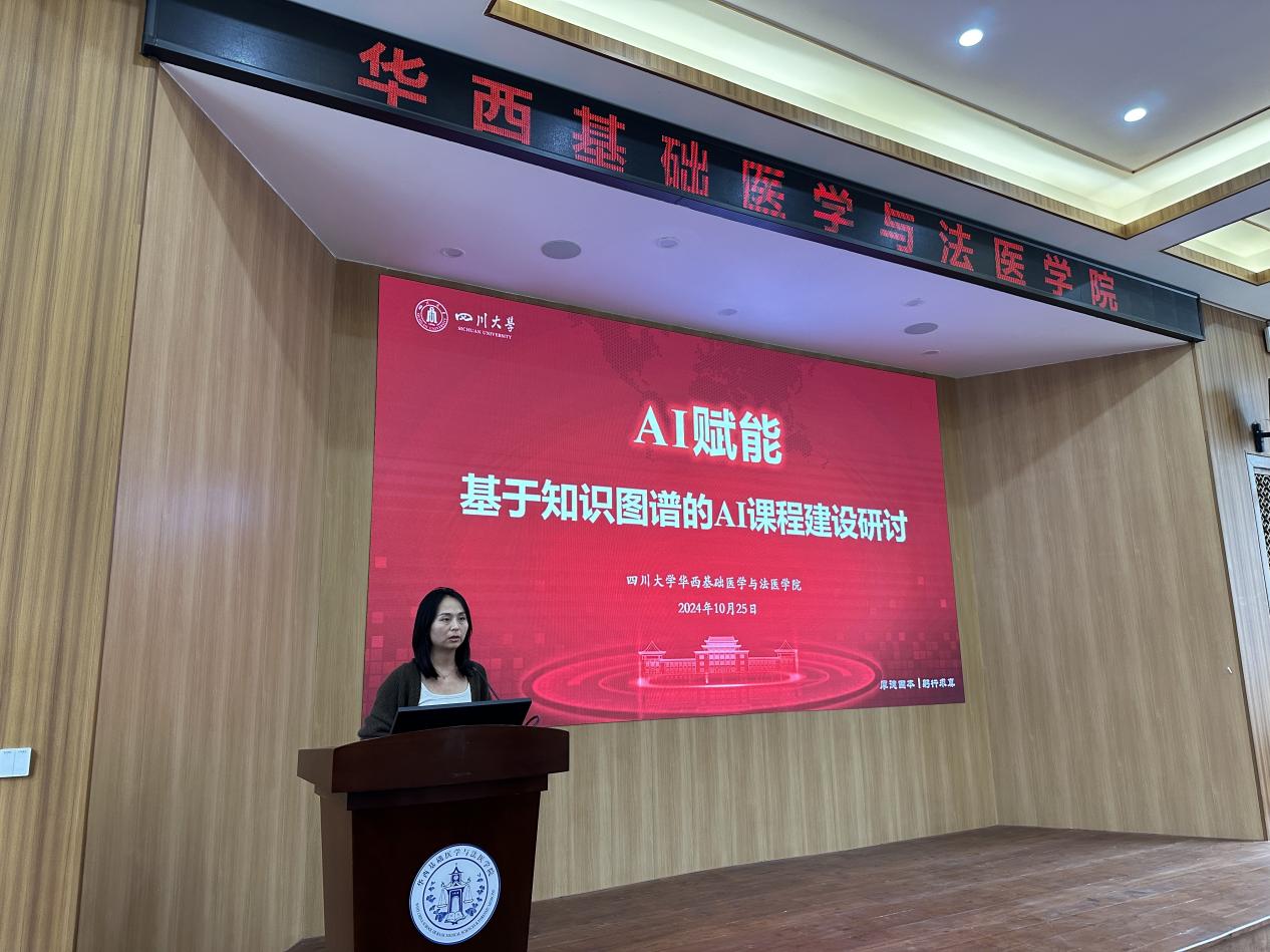 接着,药理教研室朱玲教授分享了药理学AI课程组的建设工作。她谈到,药理教研室一直以来非常重视课程的优化改革创新,此次AI课程项目是在以往一流课程建设的基础上,更加注重运用各种数字化平台教学资源,通过整理和输入教师团队的专业资料,个性化打造“素质-能力-知识”相结合的精品课程。