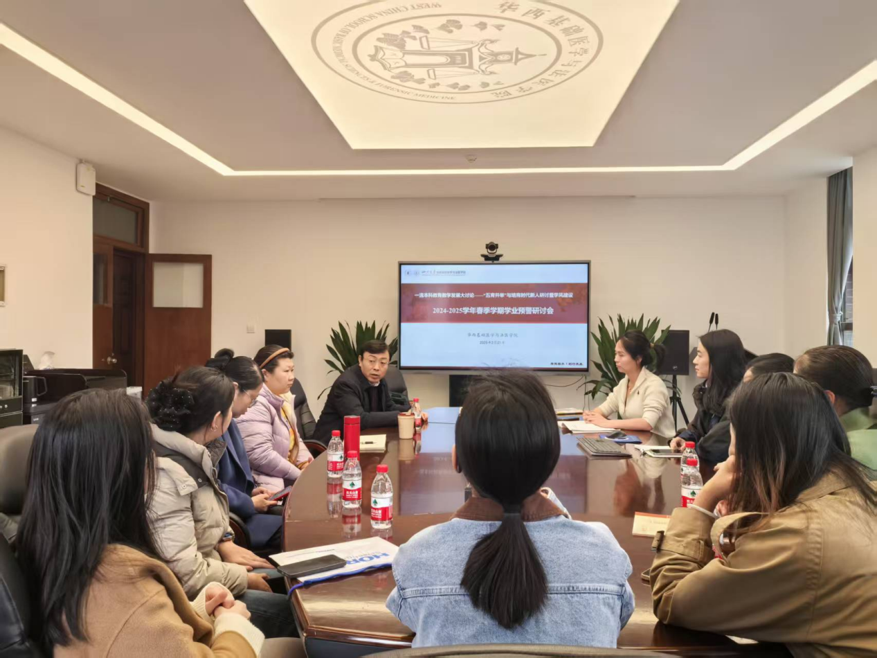 为认真学习党的二十届三中全会和全国教育大会精神,全面贯彻习近平总书记关于教育工作的重要论述,结合学校《关于在全校开展一流本科教育教学发展大讨论的工作方案》和《英国威廉集团官网2025年“五育并举”与培育时代新人研讨暨学风建设月活动方案》要求,我院于3月21日下午2:00在华西逸夫楼229会议室组织召开了教风学风管风协同发展研讨会,教学副院长梁伟波、全体班主任老师、教学科及学生科相关人员参会,会议由教学科科长肖世维主持。
