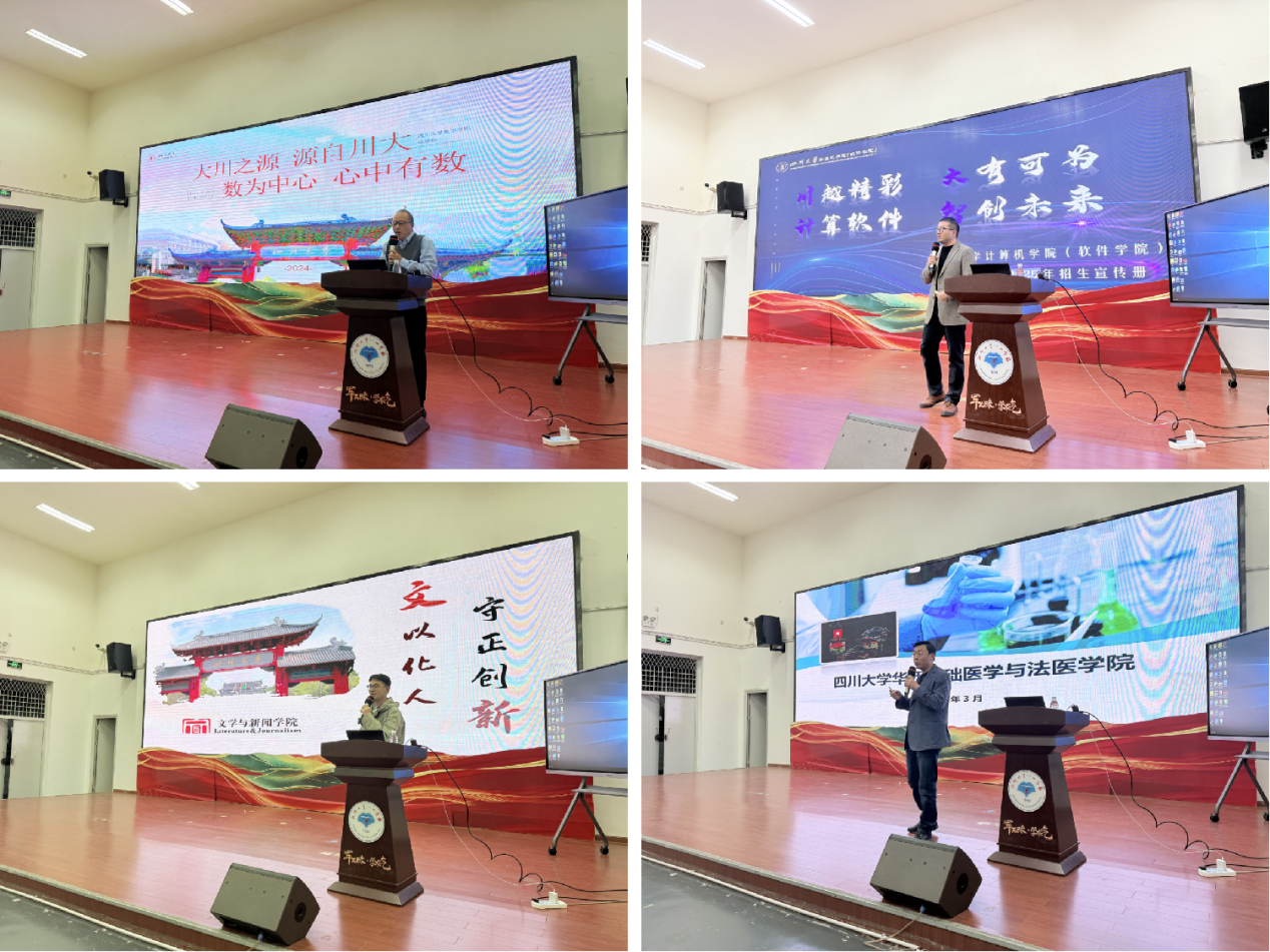 为深入实施一流本科教育教学发展计划,加强与省内重点中学的合作交流,吸引优质生源报考我校,4月6日,由我校招生办公室副主任廖爱民和我院教学副院长梁伟波教授带队,与数学学院副院长寇辉教授、计算机学院(软件学院、智能科学与技术学院)副院长严斌宇教授、文学与新闻学院宋耀教授及相关人员组成宣讲团,前往成都七中八一学校开展本科招生宣传活动。成都七中八一学校副校长沈健、教务处主任夏开棋、教师代表及高三学生近200人参加了本次活动。