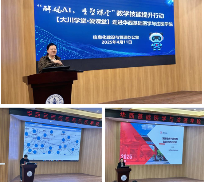为深化本科教育教学改革,持续推进一流本科教育教学发展大讨论有关工作。4月11日下午2:30,我院在华西校区第五教学楼报告厅召开AI深度赋能一流本科建设行动研讨会。会议邀请了学校信息化建设与管理办公室王春艳、田建林做了关于大川学堂教学平台运用的报告,我院法医临床学教学团队代表刘渊、组织学与胚胎学教研室彭谨分别就人工智能赋能教学做了分享交流。学院党委书记李华、副书记兼副院长罗海玻、副院长梁伟波出席了会议,学院教师参加了会议,会议由教学科科长肖世维主持。