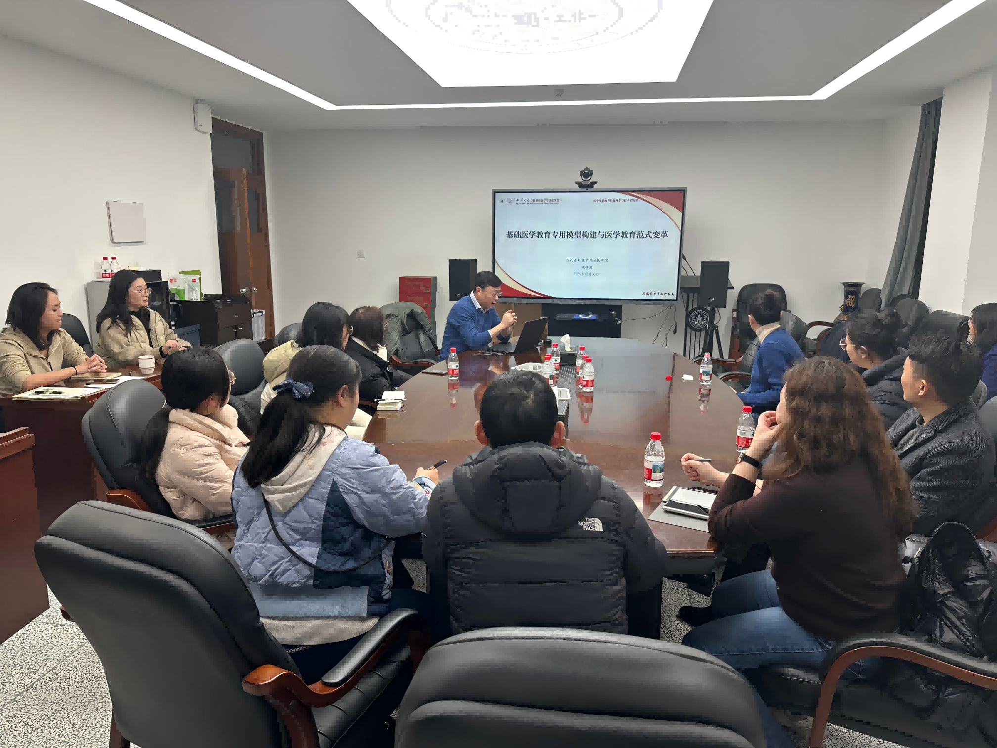 12月8日,医学基础AI核心课程建设研讨会在逸夫楼229召开,会议由肖世维主持。此次会议中,我院医学基础AI核心课程负责人汇报了课程建设进展,重点探讨了课程建设过程中遇到的技术瓶颈问题以及在现有教育技术平台的优劣分析。会议学习了教育部最新发布的《教师生成式人工智能应用指引(第一版)》,引导教师们科学、安全、合规、理性地应用生成式人工智能。接着,肖世维就基础医学教育专用模型建设具体情况进行了汇报,最后由梁伟波院长进行了下一步工作部署。