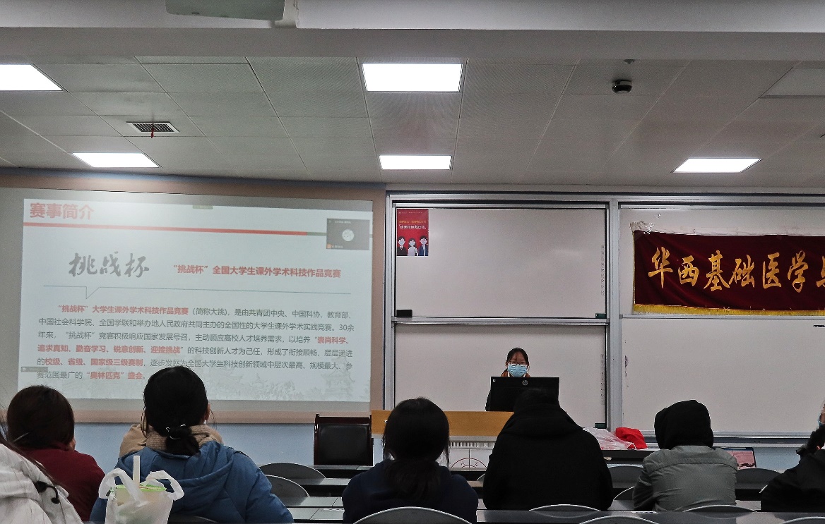 2021级曹琳苑同学首先为大家讲解了“挑战杯”大学生课外学术科技作品竞赛、“挑战杯”大学生创业计划竞赛和中国国际“互联网+”大学生创新创业大赛三门赛事的概况,让新生对相关竞赛有初步的认知。