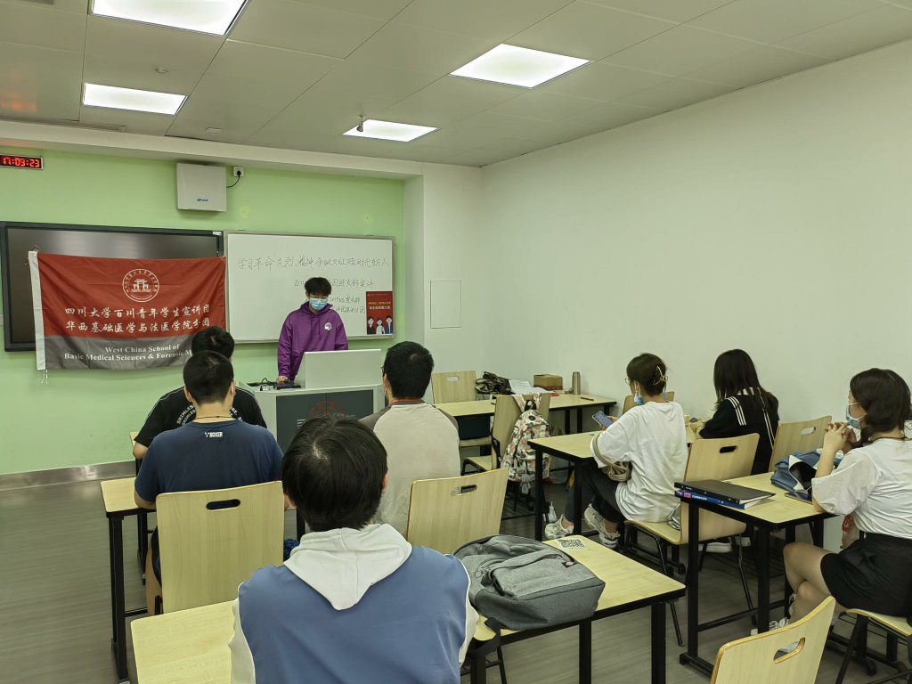 张灵轩同学号召学生党员做新时代传承红色革命精神的排头兵用理论武装思想,用专业所学回馈社会。宣讲结束后,同学们分组展开讨论,踊跃表达了对传承红色革命基因,树立爱党爱国情怀的决心和思考。