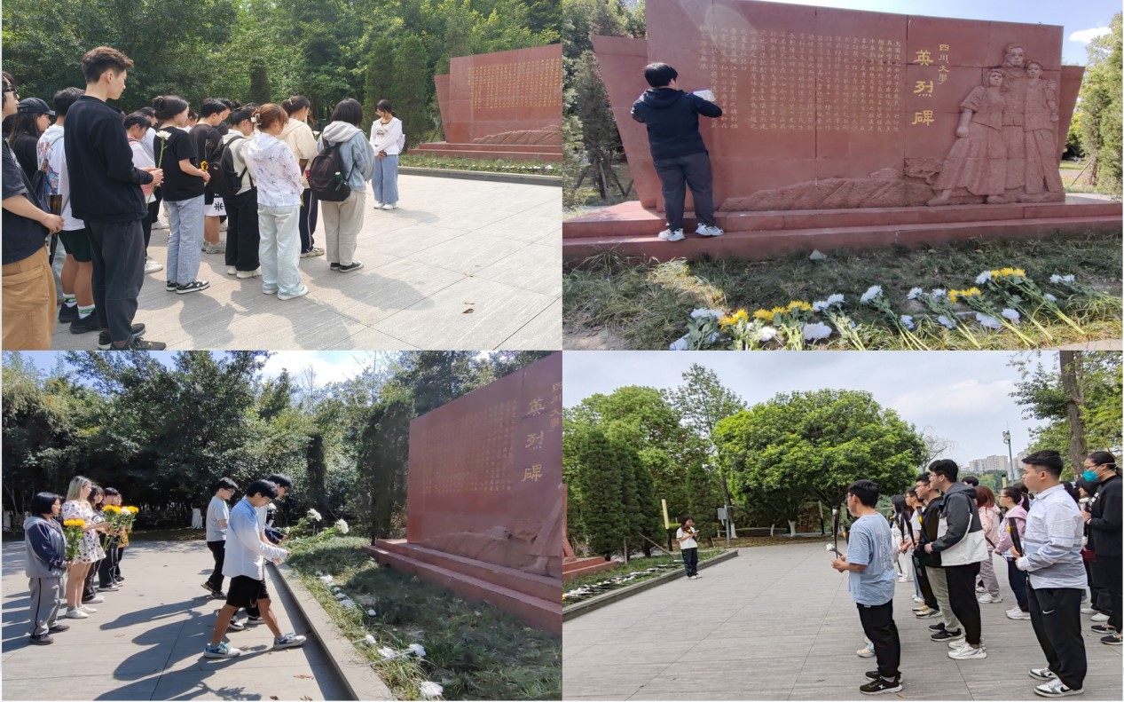 在江安校区革命英烈纪念碑前进行清明祭扫活动