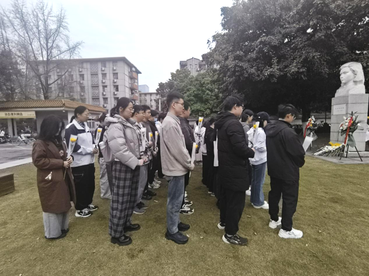 3月29日,我院本科第二、三党支部联合江姐班赴成都马鞍山烈士纪念园开展祭扫活动。大家有序参观了主题纪念馆,学习“入川”“入城”“入巷”三个阶段中国人民解放军决战川西、解放成都、清匪反特的英勇战斗历程和可歌可泣的英雄事迹,深刻感受到了革命先烈们不畏艰险、英勇无畏的战斗精神和坚定信念。同学们默哀后敬献鲜花,以表达对革命先烈的深切哀思和崇高敬意。