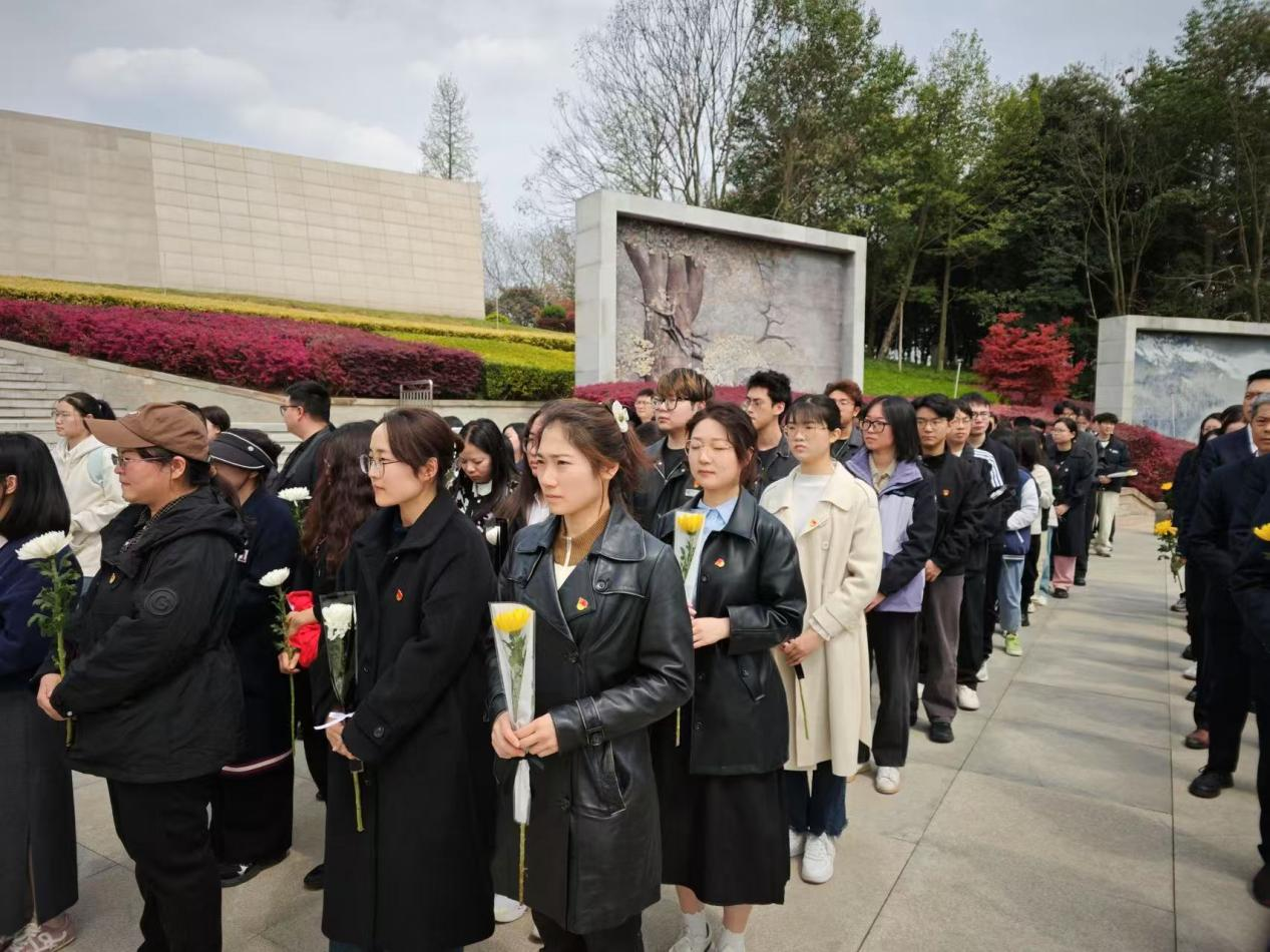 4月3日,硕士研究生第一、二、三党支部及本科生第一党支部赴成都市烈士陵园追思铸魂。全体师生于烈士纪念碑前肃立默哀后,党员们面向党旗重温入党誓词,并向纪念碑敬献鲜花。在烈士纪念馆参观中,师生透过泛黄的照片、斑驳的文物与震撼的影像,重温四川保路运动、抗战烽火等峥嵘岁月。参与活动的同学纷纷表示,将以英烈精神为镜,在新时代长征路上书写青春答卷。