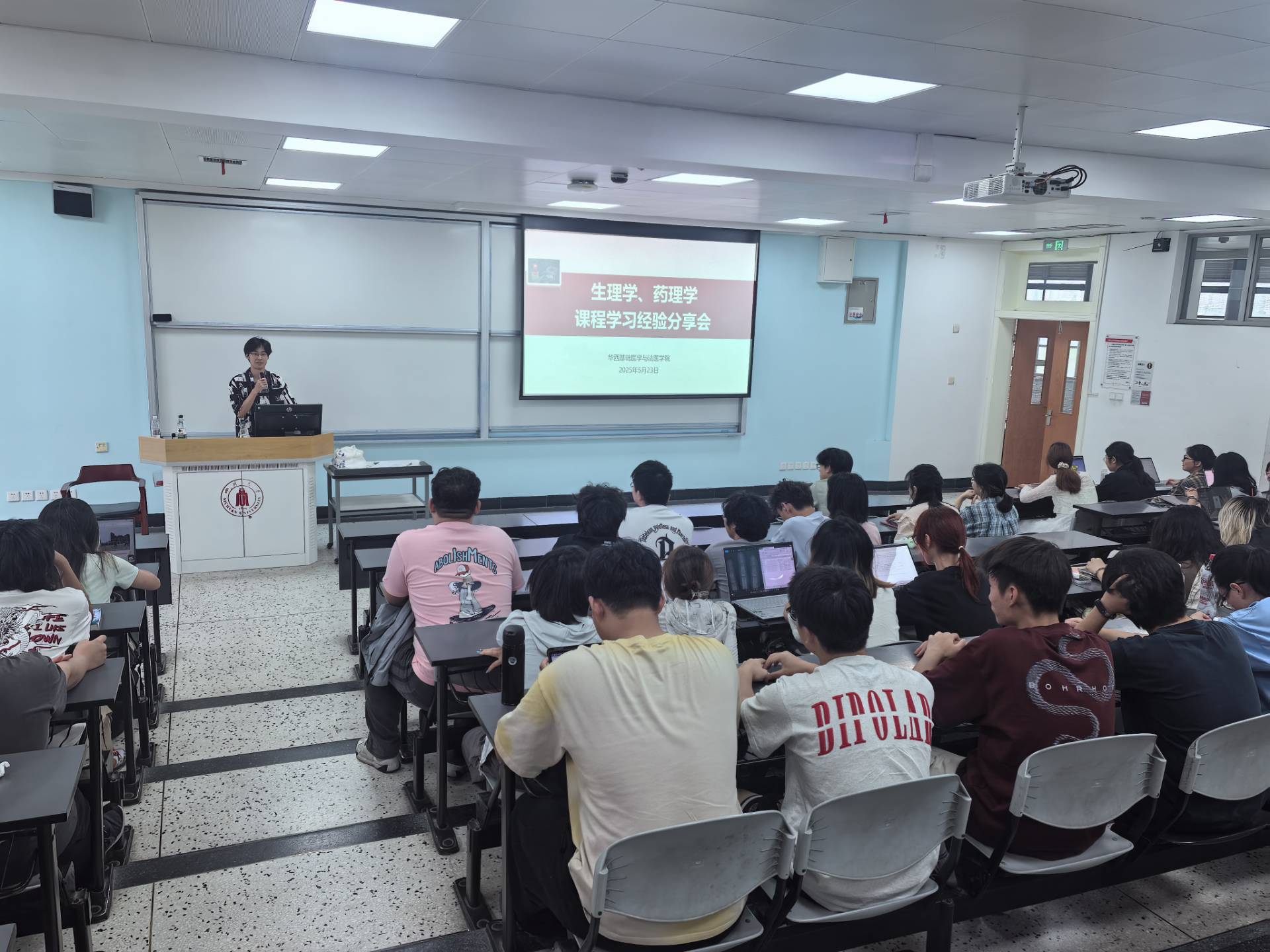 5月23日下午,我院在江安校区一教B403教室,举办药学理、生理学课程学习经验分享会,特邀2022级法医学皮俊尧同学担任主讲,为2023级60余名同学系统梳理药理学与生理学两门核心课程的学习方法。