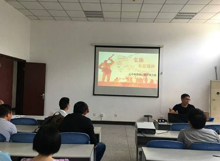 最后何学令副研究员给动物中心全体职工上了一堂以《弘扬长征精神》为主题的党课,带领全体参会者重温了中国革命的这一段历史,并提出在单位实际工作中要有不屈不挠,艰苦奋斗和无私奉献的长征精神。