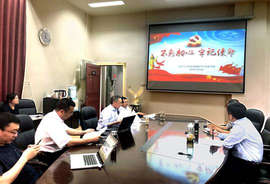 李昌龙书记带领大家学习了5月31日 在北京召开的“不忘初心、牢记使命”主题教育工作会议精神,他表示,在这次会议中,习近平总书记深刻阐述了开展“不忘初心、牢记使命”主题教育的重大意义、总要求、根本任务和具体目标,具有很强的政治性、思想性、针对性、指导性,是开展“不忘初心、牢记使命”主题教育的根本指针,是新时代加强党的建设的纲领性文献。结合我院实际,我们要时刻谨记自己的使命,不负重托,为学院的改革和发展贡献自己的力量,既要仰望星空也要脚踏实地,敢于承担勇于承担,牢记实现学院一流学科建设的伟大使命。
