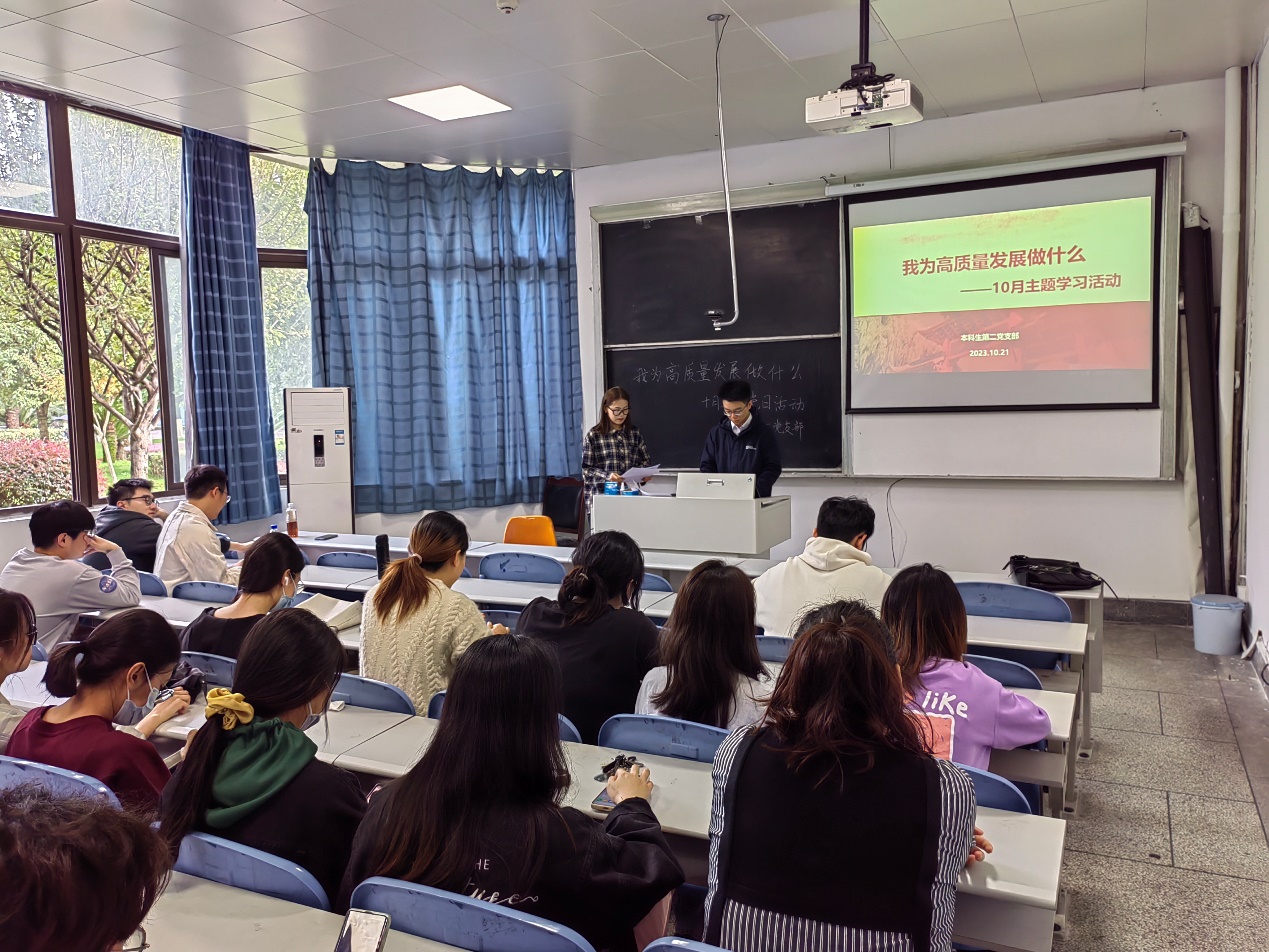 为扎实推进学校新学期工作落地,近期,学院本科第二党支部在逸夫楼一楼教室举行“我为高质量发展做什么”主题党日活动。本次活动由尹向蕙君和李雨洋共同主持,支部全体党员参加。