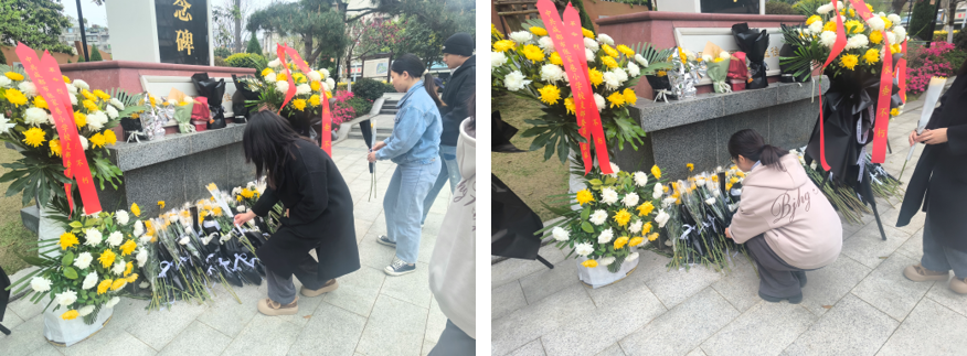 参观学习结束后,党员和同学们怀着崇敬与缅怀之情,整齐列队于革命烈士纪念碑前,神情庄重,肃立默哀。随后,在庄严肃穆的氛围中,大家依次排队上前,将手中鲜花轻轻敬献于纪念碑前,以表达对革命先烈的深切哀思和崇高敬意。