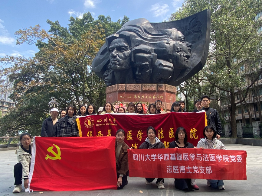 在清明节来临之际,法医博士支部联合基础博士支部组织全体党员于4月2日下午前往二一六烈士纪念碑开展清明祭英烈活动,缅怀革命先烈,传承红色基因。