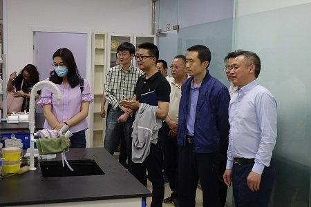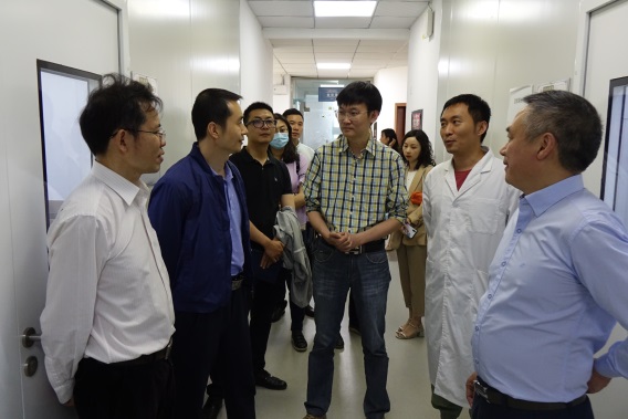 李书记陪同刘飞部长(右二)参观实验室