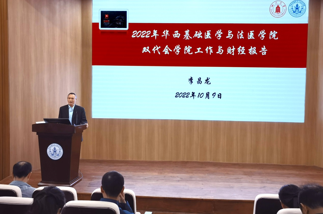 院长李昌龙向大会作2022年学院工作报告和财经报告。在工作报告中,院长李昌龙全面总结了学院在党建、师资队伍、英国威廉希尔公司、科学研究、条件建设和后勤保障、疫情防控等方面的工作,部署了学院近期重点推进学习贯彻落实党的二十大精神,加强师资培育、英国威廉希尔公司和学科平台建设,积极组织参与各类竞赛,做好实验动物中心与学院协同发展,优化绩效考核,保障安全稳定等工作。他希望学院全体教职工凝心聚力,始终坚持党的全面领导,始终坚守立德树人初心使命,按照学校第九次党代会的会议精神,认真落实学校党代会部署的思路举措,以办最好的医科为宗旨,对标学院“十四五”目标,团结奋斗,锐意进取,扎实推进我院各项工作。李昌龙院长还就学院2022年财经工作情况向大会做了详细的汇报。