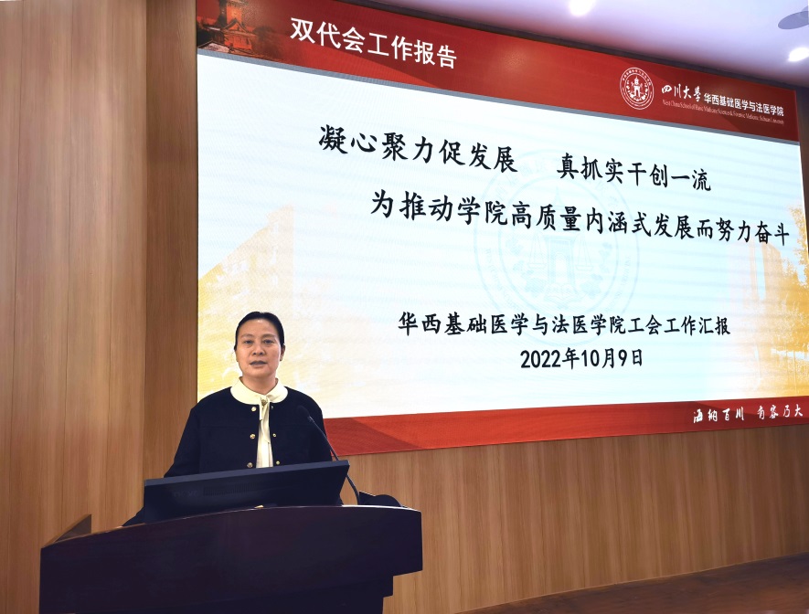 工会主席黄莉向大会做上届教代会暨工代会工作报告,对五年来学院工会在民主政治建设、开展党史学习教育、加强教职工师德师风建设、助力青年教师成长、服务教职工等工作做了回顾,对工会取得的成绩和工作中存在的不足进行了总结。她号召全体工会会员要在学院党政领导下,坚持以习近平新时代中国特色社会主义思想和党的十九大以及即将召开的二十大精神为指引,充分贯彻学校第九次党代会的精神,勇担时代使命,抓住发展机遇,以“院荣我荣,院强我强”的高度责任感和荣誉感,以“心往一处想,劲往一处使,全院一盘棋”的团结理念,主动担当作为,追求卓越,为加快推进“双一流”建设和学院高质量内涵式发展而不懈努力。