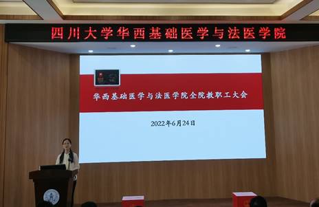 党委书记李华教授在总结发言中指出,为热烈庆祝中国共产党成立101周年,继承和发扬党的光荣传统,学院开展了讲授微党课、“主题党日”等系列活动,用实际行动迎接党的二十大胜利召开,希望各支部积极落实各项要求。同时,她代表学院热烈欢迎实验动物中心的加入。她强调,学院将高度重视、全力支持动物中心的发展。院内各单位要互相配合支持,实现优质资源共建共享,优势互补,进一步提高办学质量,加强科研创新,促进学院各项工作更好更快发展。最后,她强调,在暑假来临之际,全院师生暑期严格按照学校的要求做好疫情防控工作。同时,要加强暑期安全管理,切实做好暑期安全工作,确保学院安全稳定。