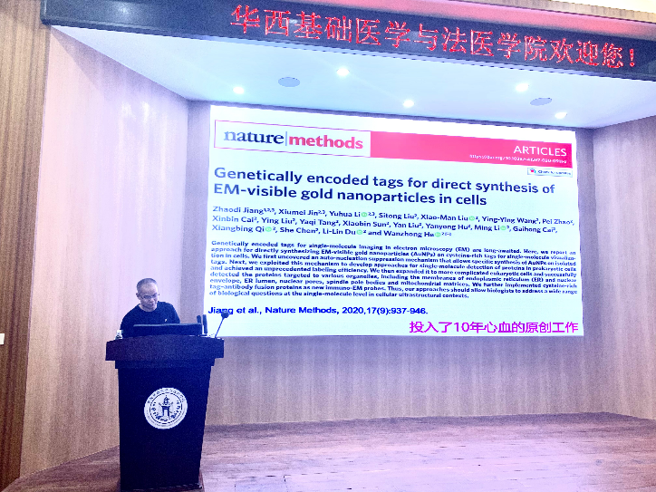 应我院邀请,2020年11月24日上午10:00,北京生命科学研究所研究员何万中教授在华西校区五教报告厅做了题为“可克隆电镜标记技术实现细胞超微结构的单分子水平定位”的学术报告。